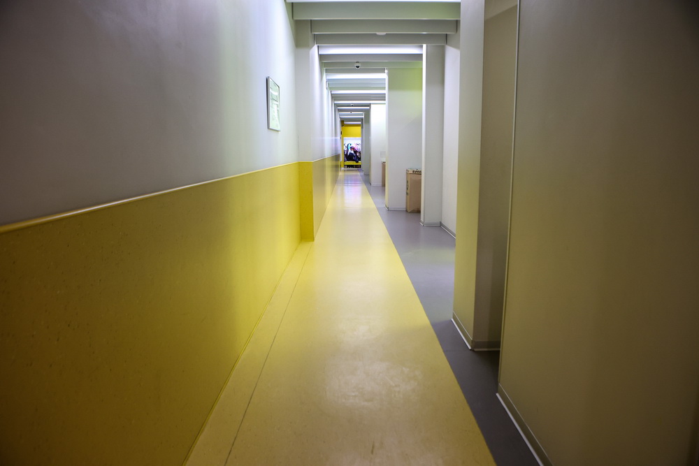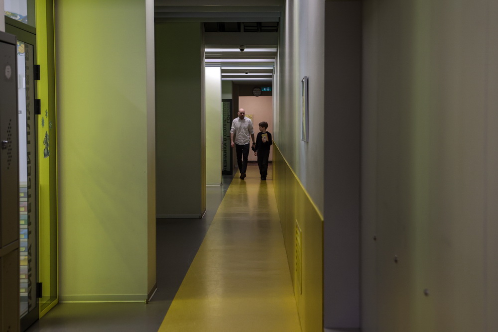 На перемене эта школа ничем не отличается от обычной муниципальной — в коридорах такая же живая суета, шум и гам. Две сотни детей рассредоточены по своим отделениям — младшие классы отдельно от старших. Встречаются большие и маленькие в общей столовой.