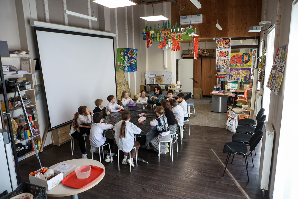 У детей очень популярны творческие предметы. Один из самых любимых — «Азбука креативного мышления», где школьники учатся работать во всех доступных техниках изобразительного искусства. В мастерской есть необходимое оборудование для школы керамики — гончарный круг, печь для обжига.