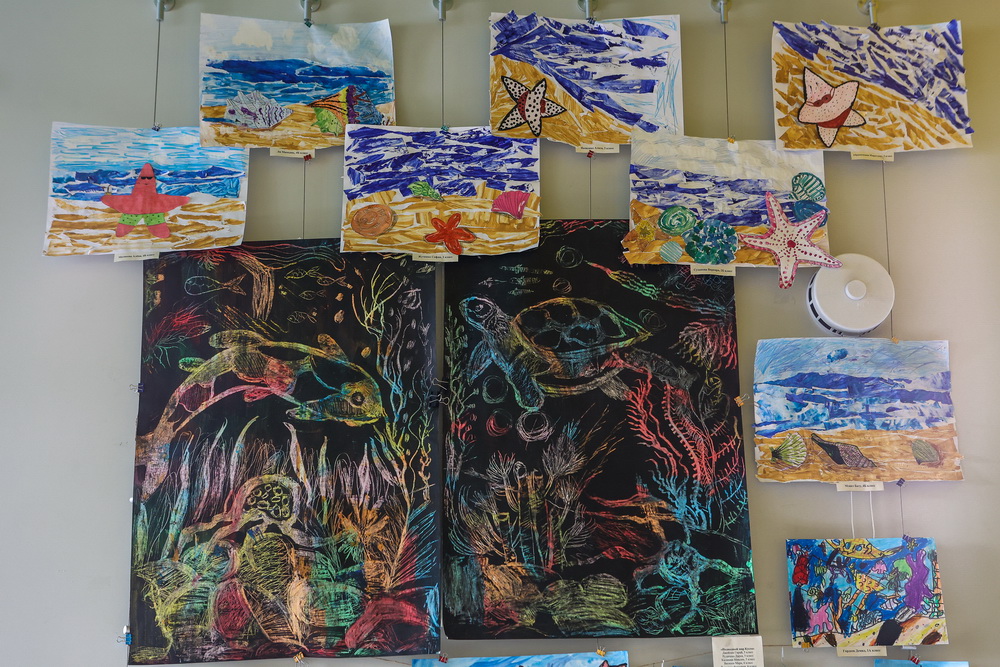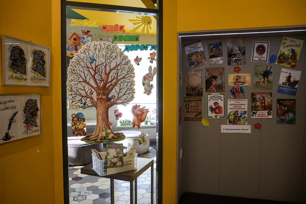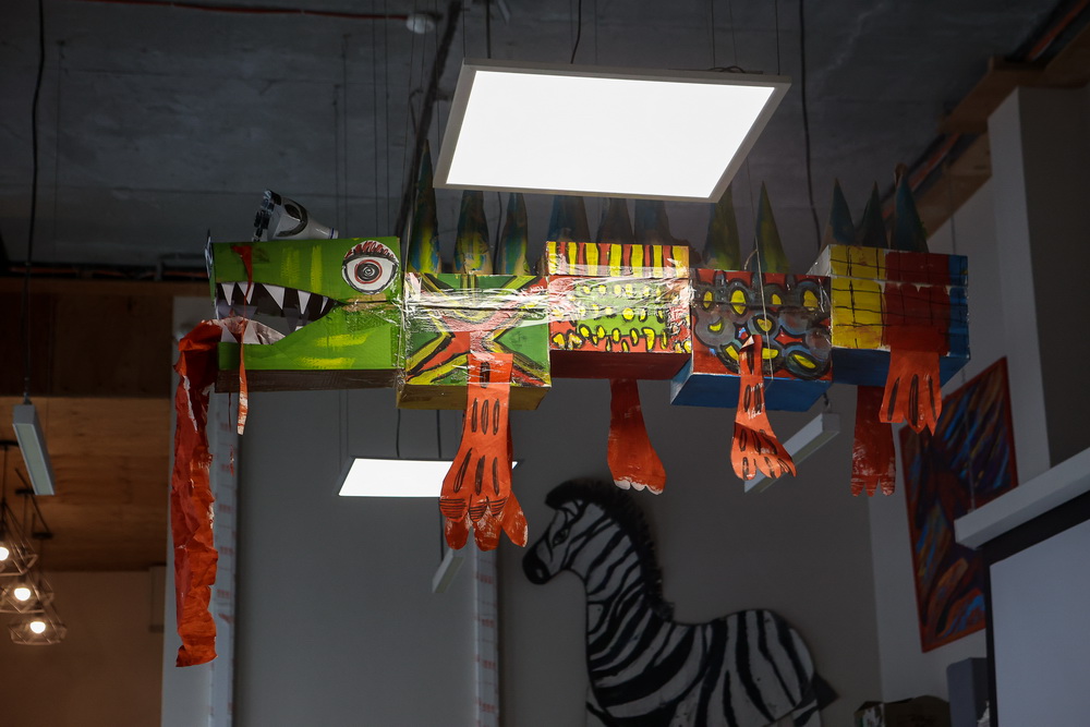 На подходе к ней находится просторная лаунж-зона, которую, по словам директора, можно назвать творческим центром школы. Здесь проходят мастер-классы, консультации, постоянно меняется выставочная экспозиция.