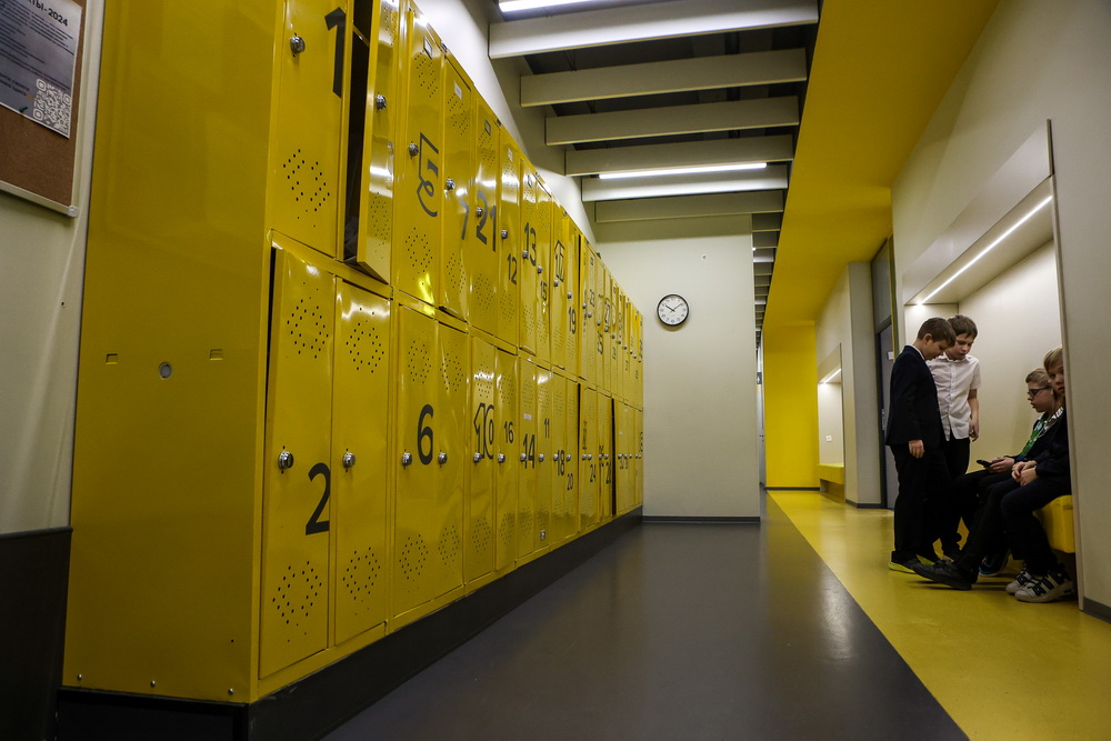 В классах у ребят есть свои личные шкафчики, где можно оставить вещи, тетради и учебники, которые не надо нести домой.