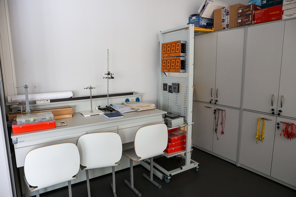 В кабинетах химии и физики предусмотрены лаборатории с полным комплектом оборудования для исследований и опытов. Занятия по информатике и программированию также проходят в кабинете физики. Парты перекатные, что позволяет при необходимости изменять пространство под разные мероприятия. Все классы оснащены кондиционерами.