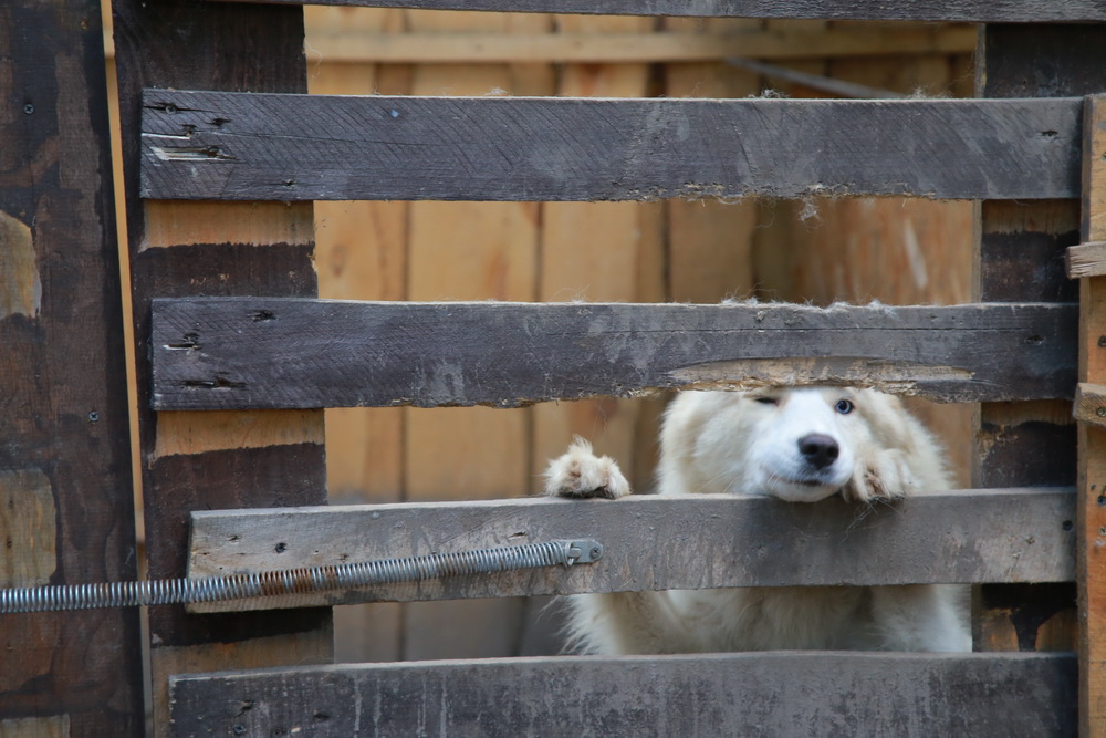 На ферме 23 собаки, все вольеры закрыты на крючок, кроме одного-единственного — он закручен шуруповёртом, потому что тут находится вожак стаи Амарах, и, каким бы образом ни придумывали крепление для этой двери, он всё равно снимает её с петель.