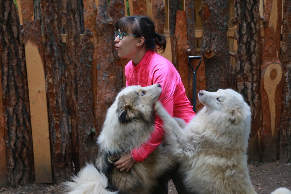 «Есть такое понятие — канистерапия. Она помогает при различного рода заболеваниях двигательного спектра (например, при ДЦП) либо аутизме. По-простому нам помогает. Если вы утомились, устали — просто приходите, обнимаете собаку — и вам становится чуть-чуть полегче», — сообщает владелица питомника лаек Евгения Грошева.