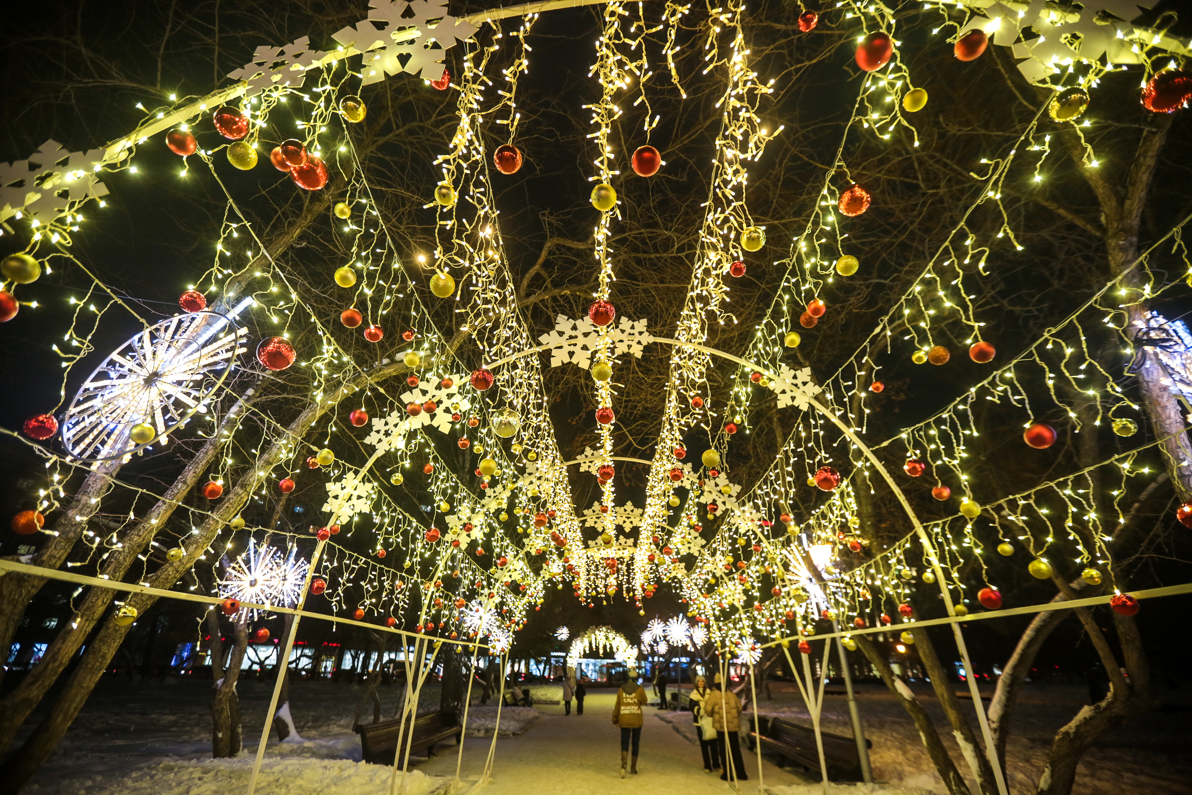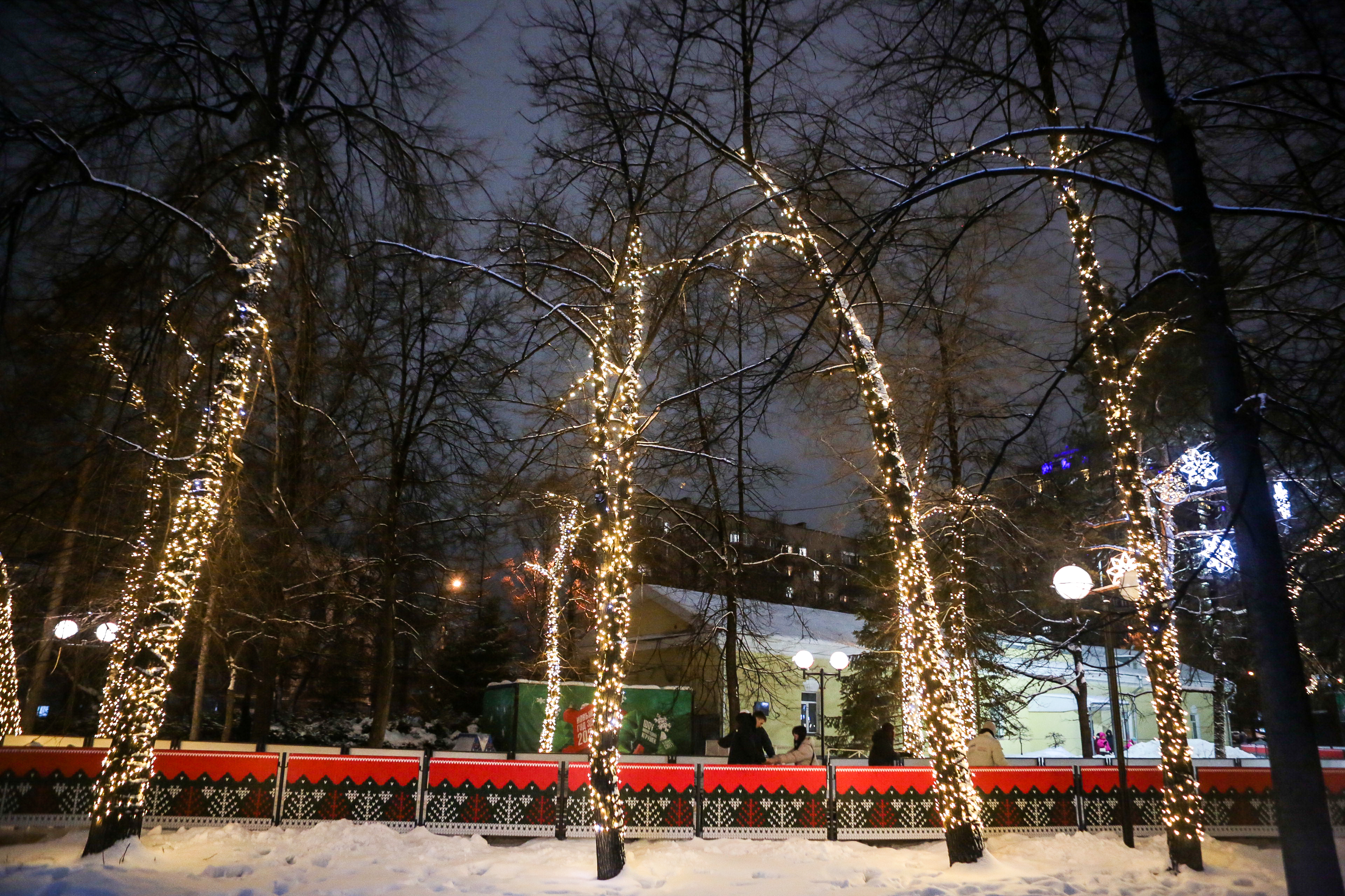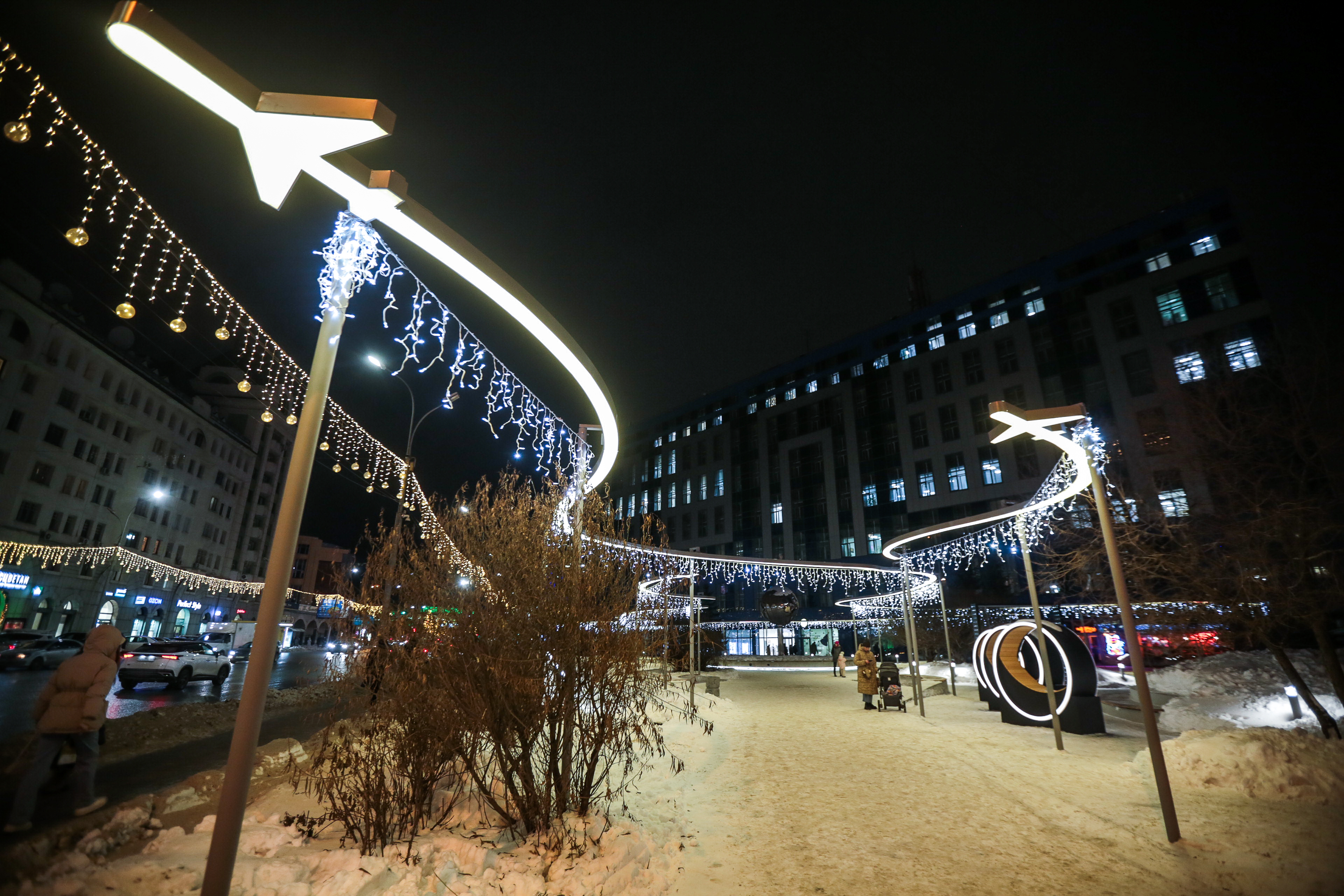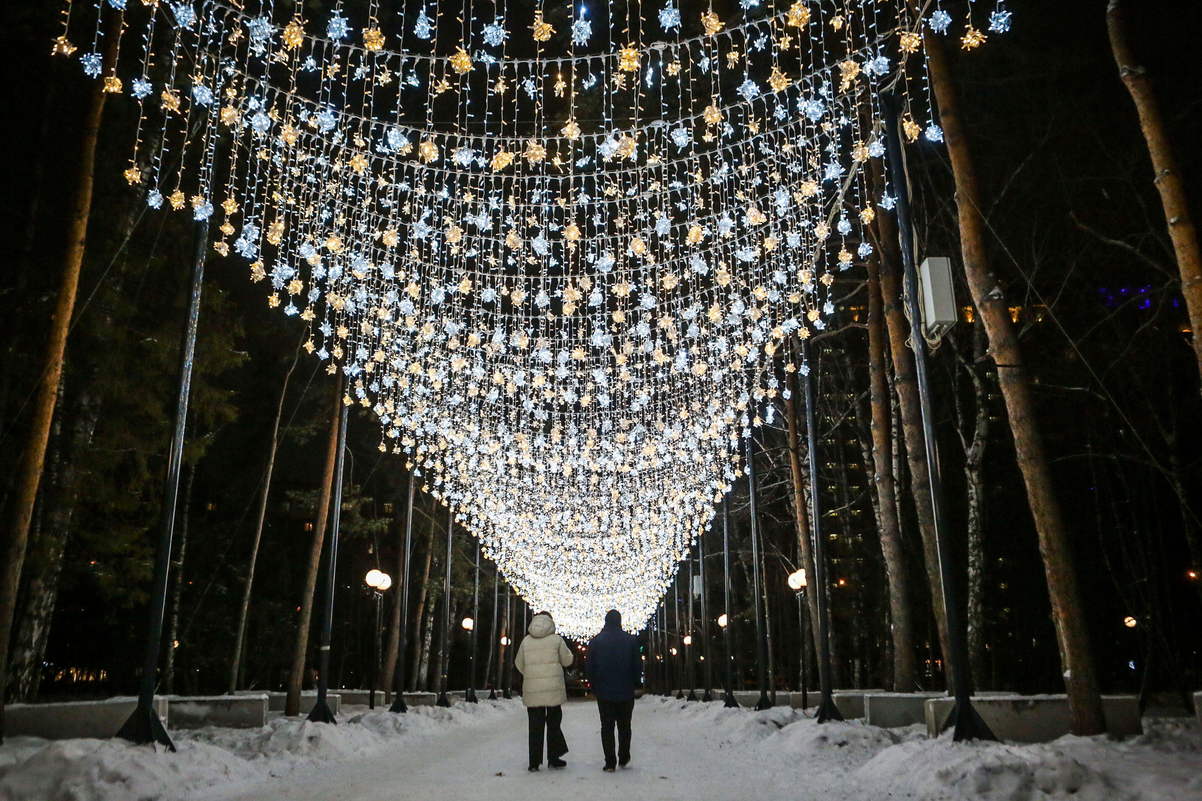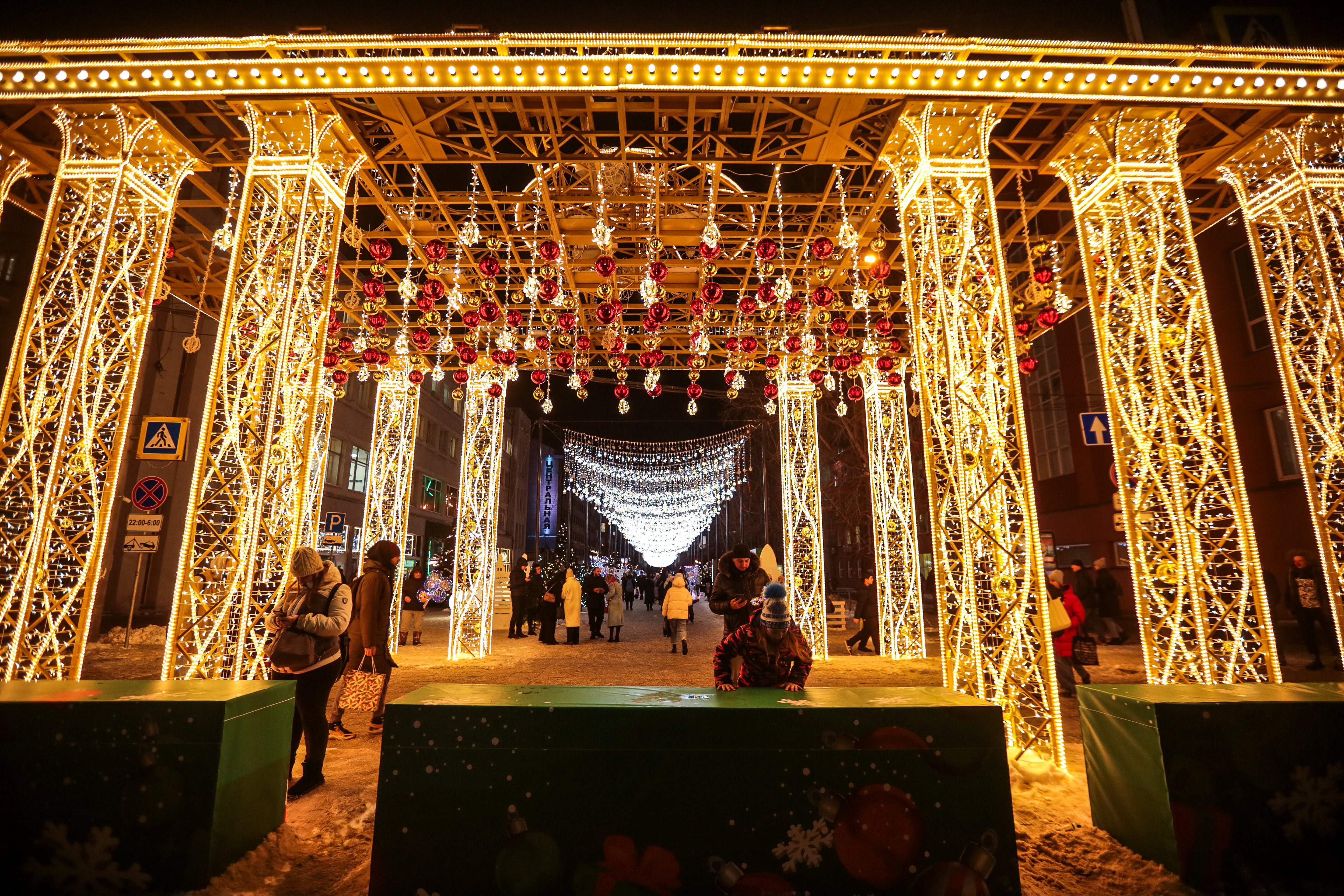 Сияющий световой потолок разместили на центральной аллее — от входа с улицы Мичурина до музыкального театра. Прошлой зимой эта конструкция украшала пешеходную улицу Ленина на отрезке от Советской до Урицкого. В новом сезоне этот участок дороги не стали перекрывать на праздники — решили ограничиться только одним кварталом, поэтому часть гирлянд там уже не понадобилась. Её решили перенести в Центральный парк.