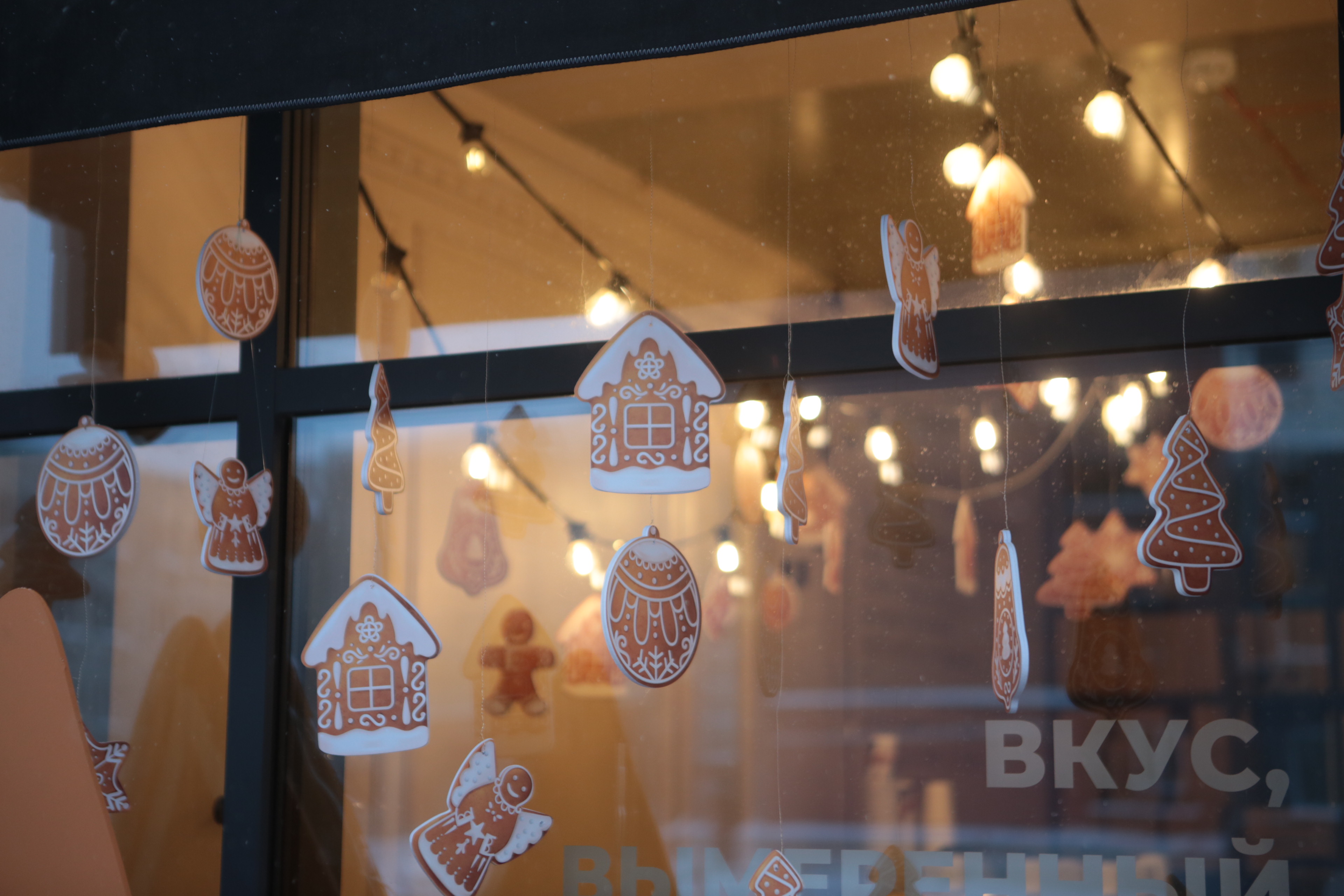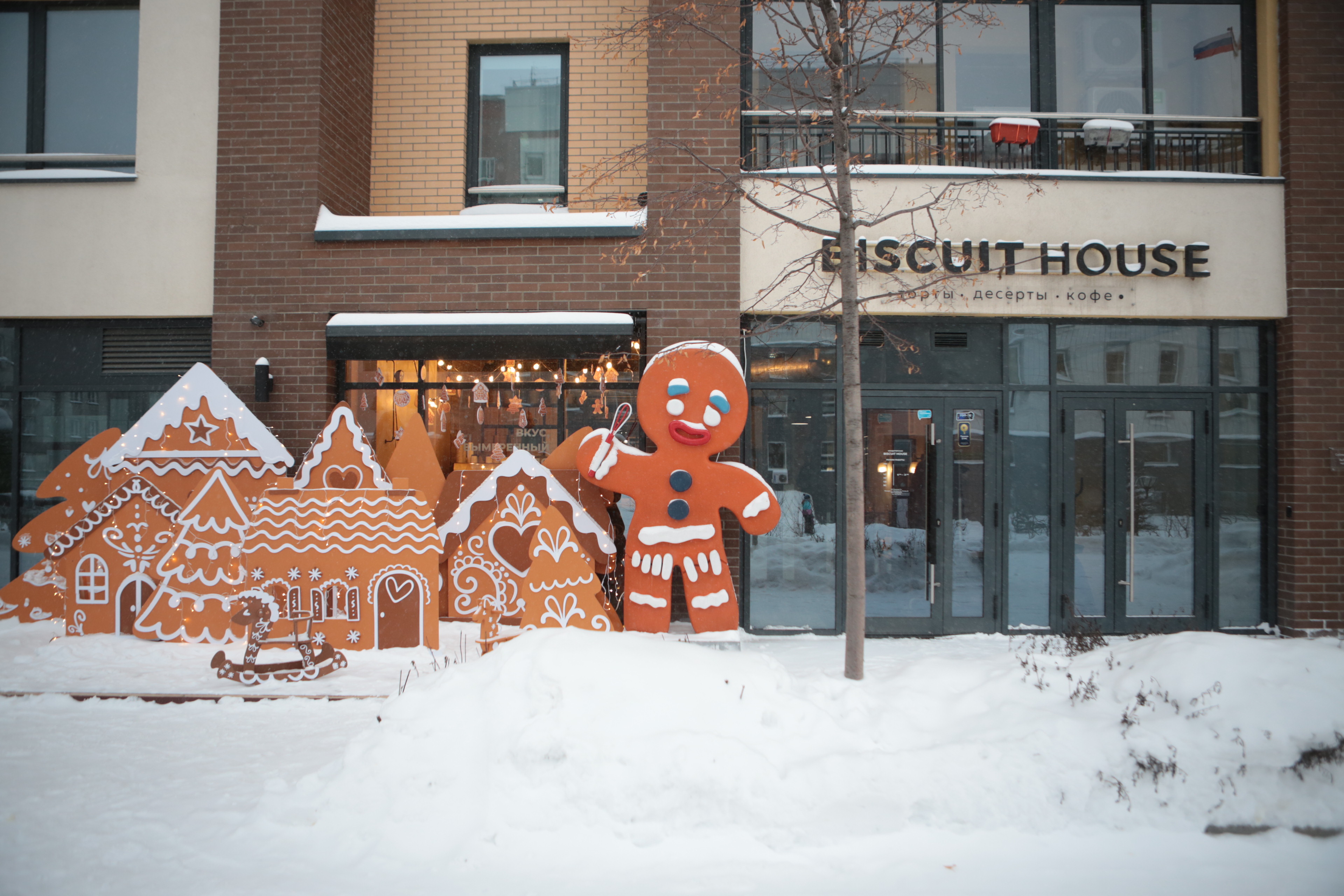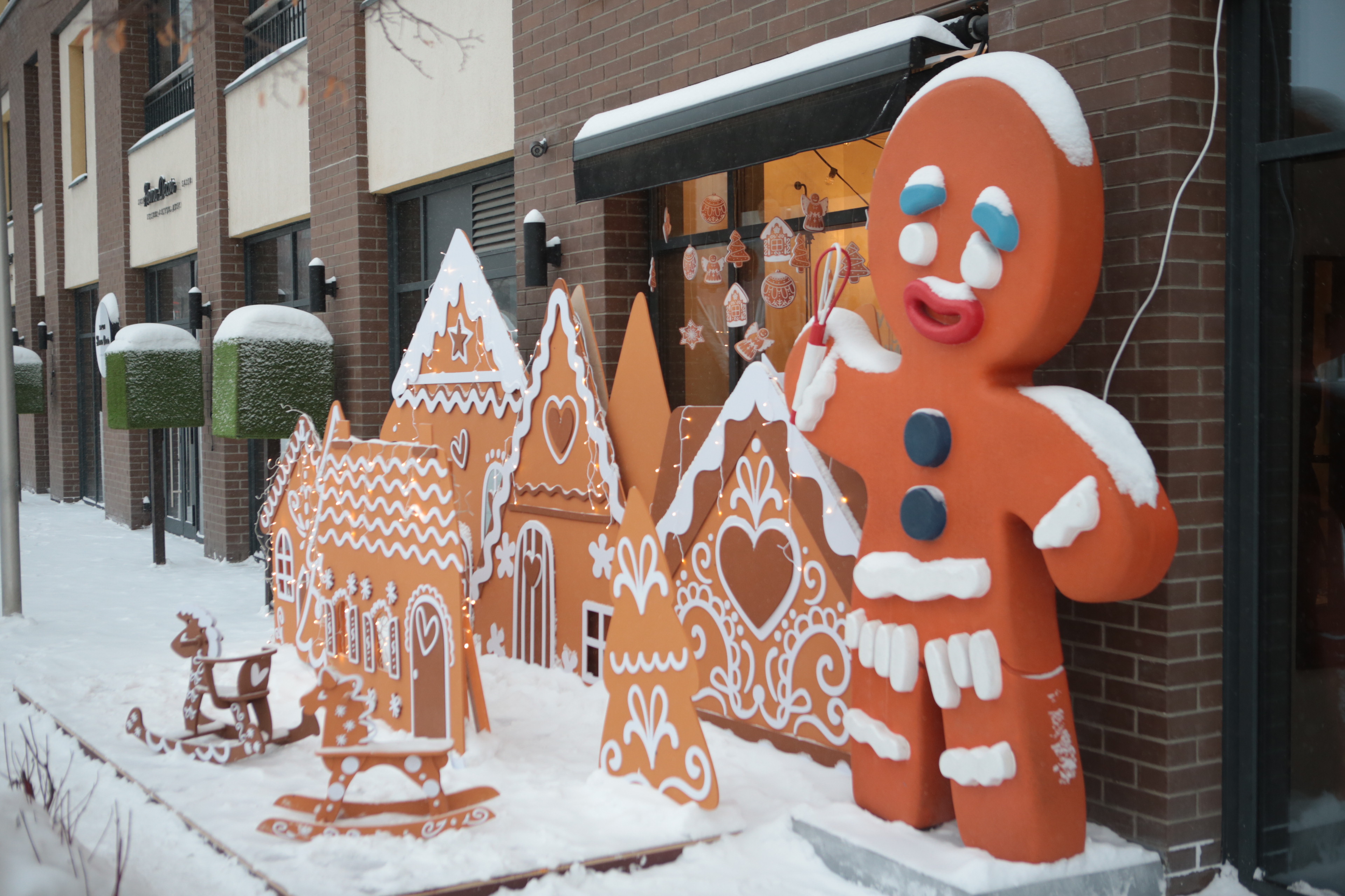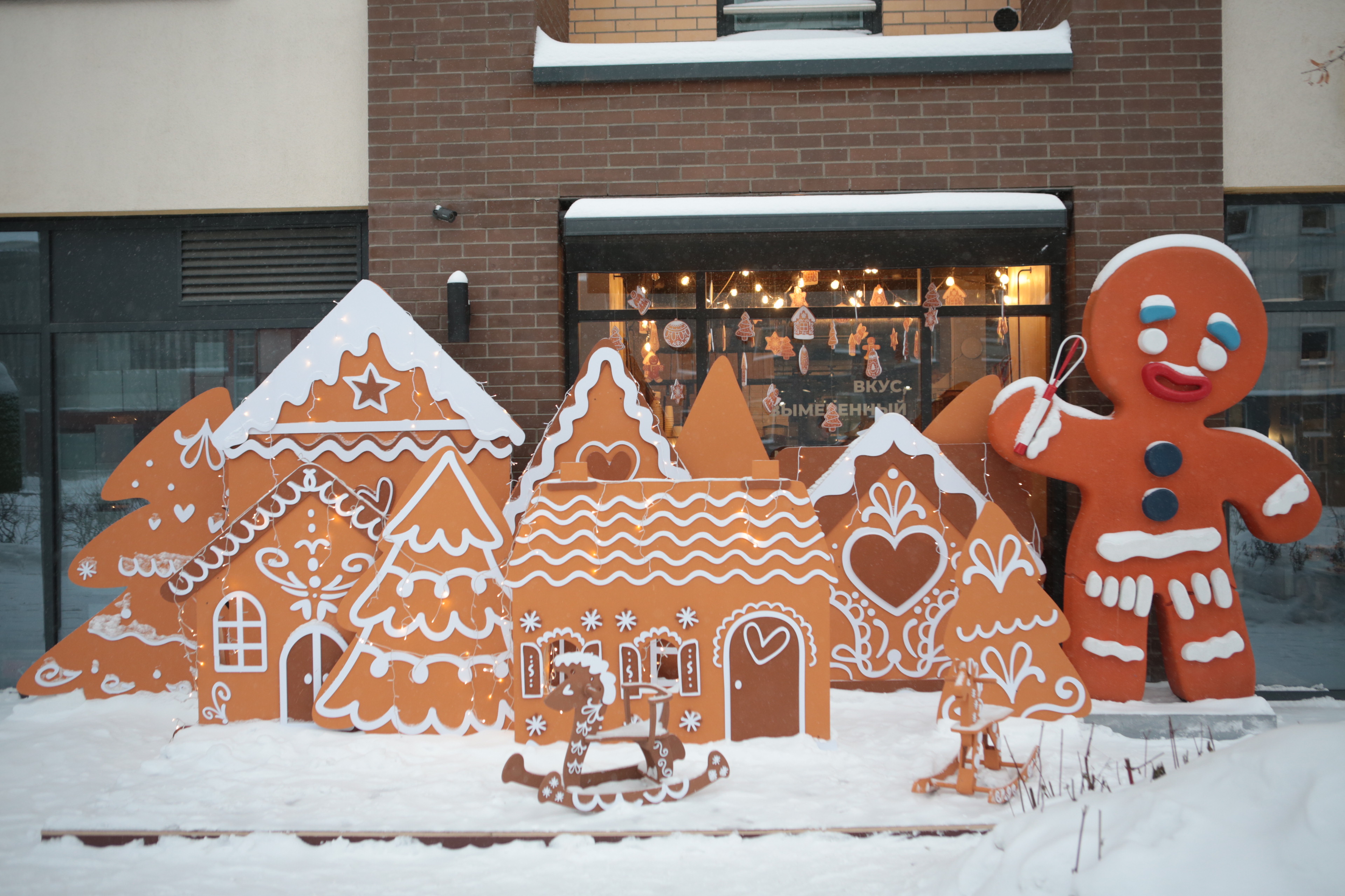 Целый имбирный городок построили у кафе на улице Декабристов, 41. Возглавляет новогодний парад человечек по имени Пряня.