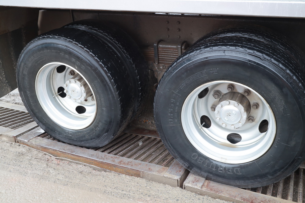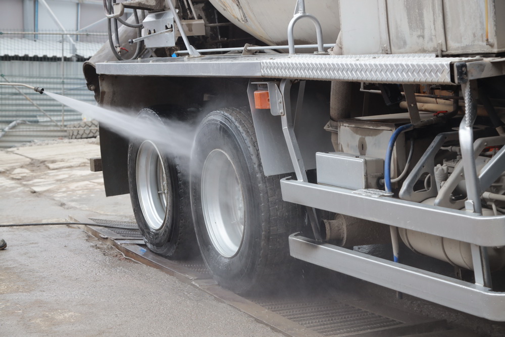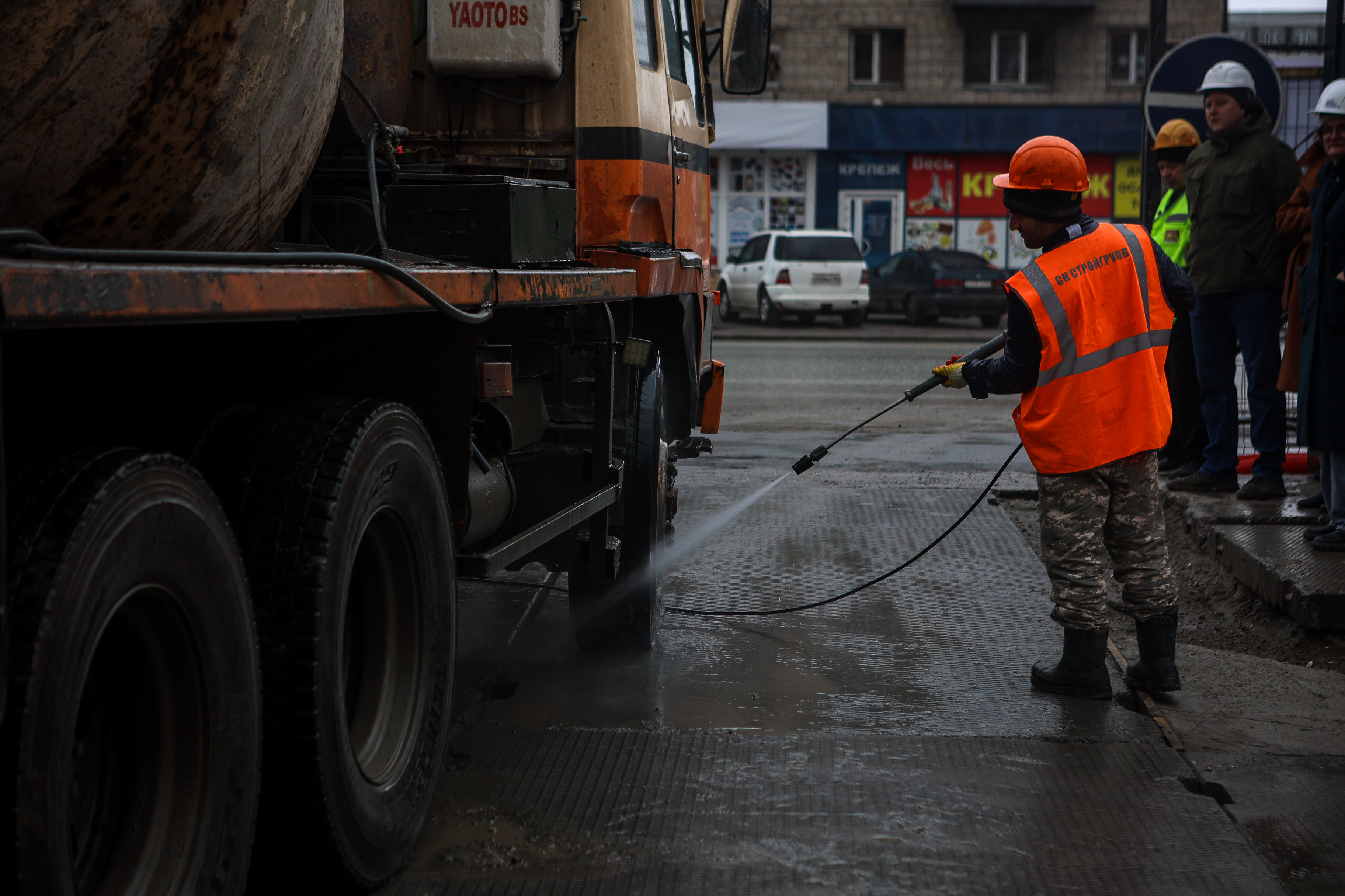 «Использование специальных установок для мойки позволяет эффективно устранять строительные остатки и грязь, предотвращая попадание этих загрязнений в городскую среду. Пять–десять минут — среднее время мойки колёс. Сейчас автомобиль развернётся на 180 градусов, и мойка будет осуществлена с другой стороны всех колёс», — комментирует процесс начальник участка Алексей Бурханов.