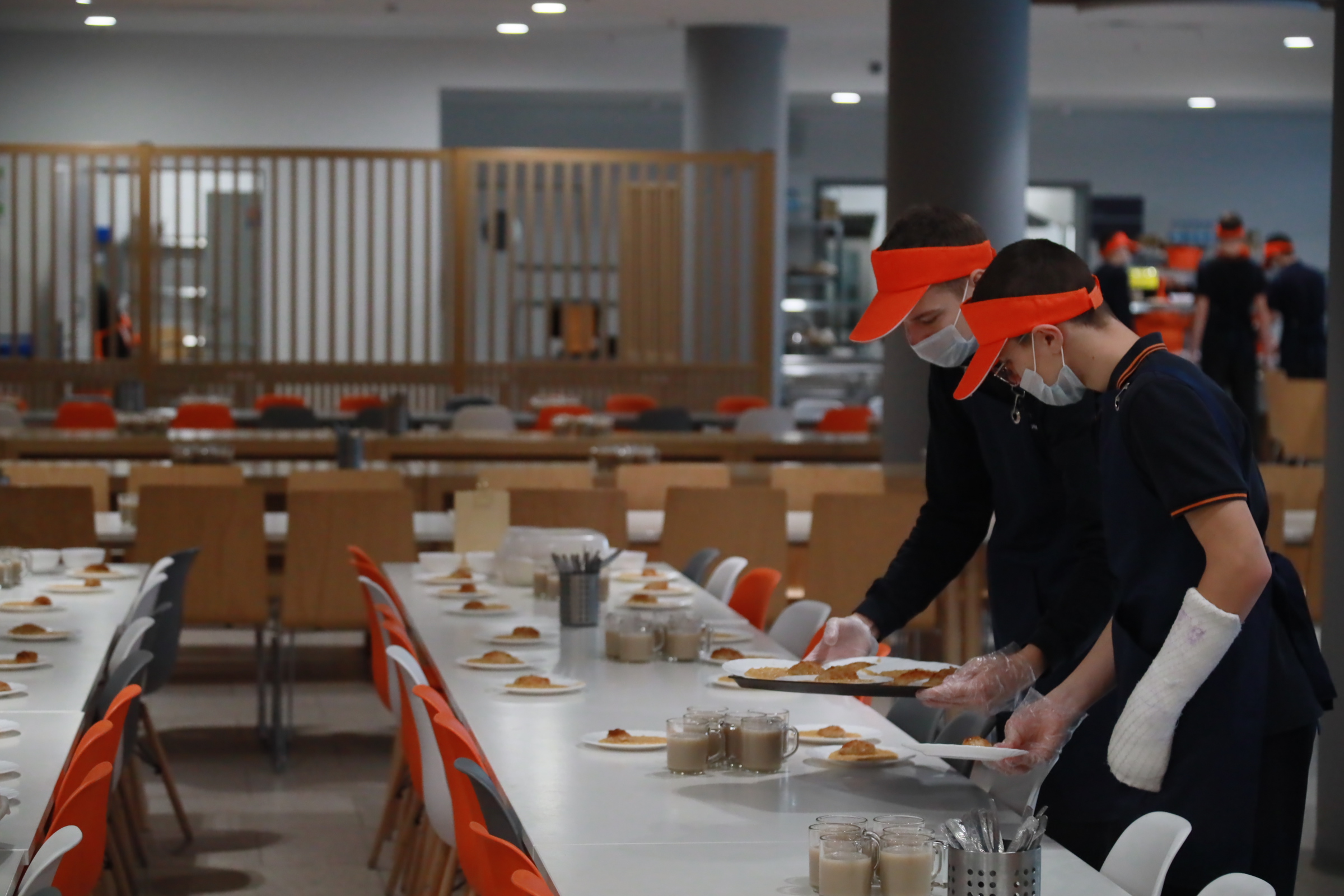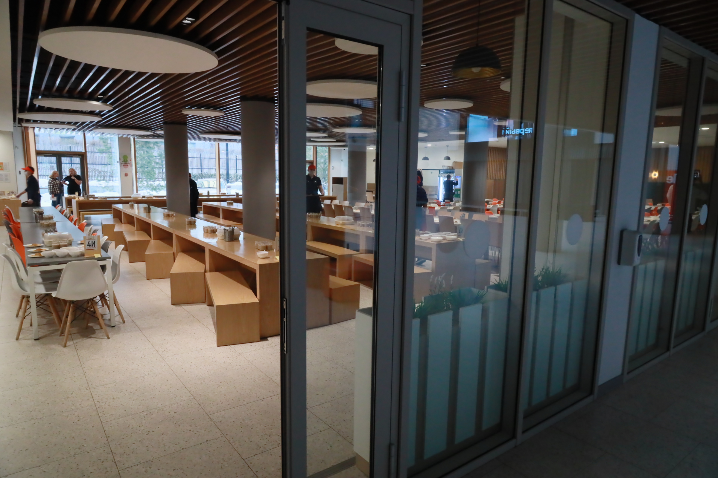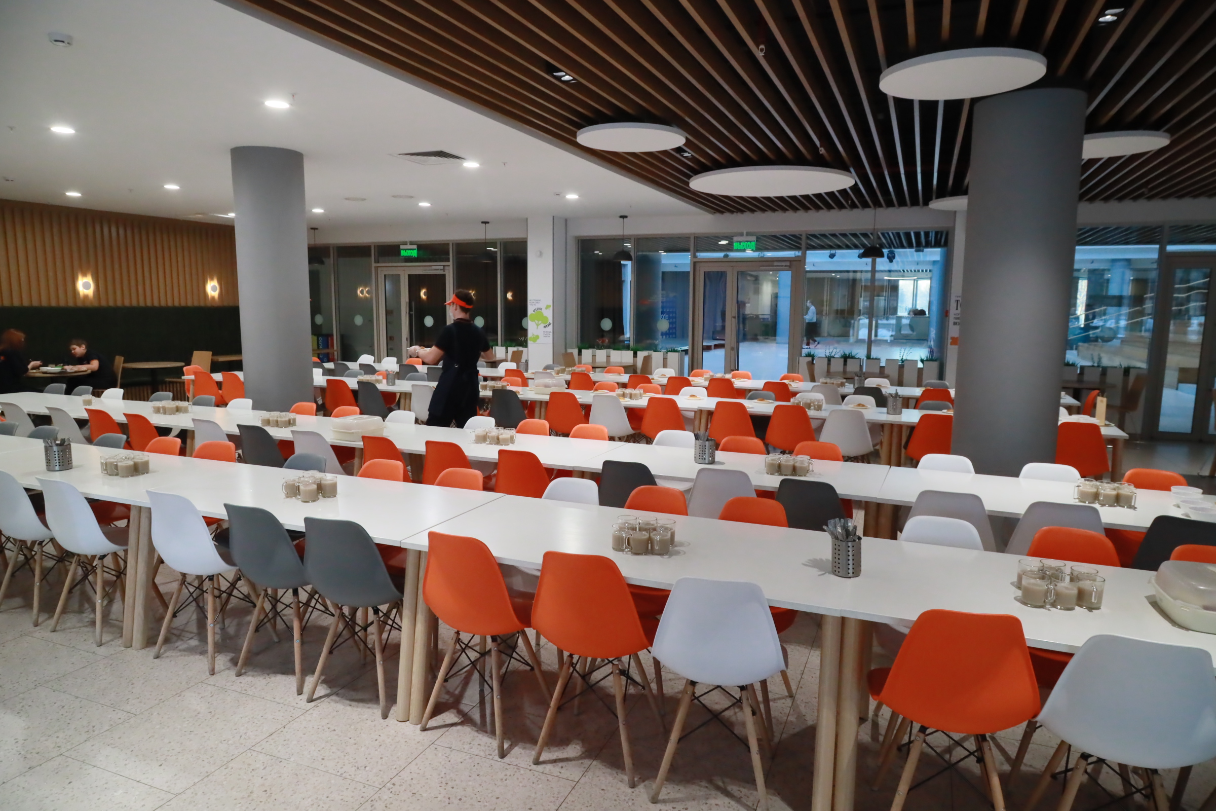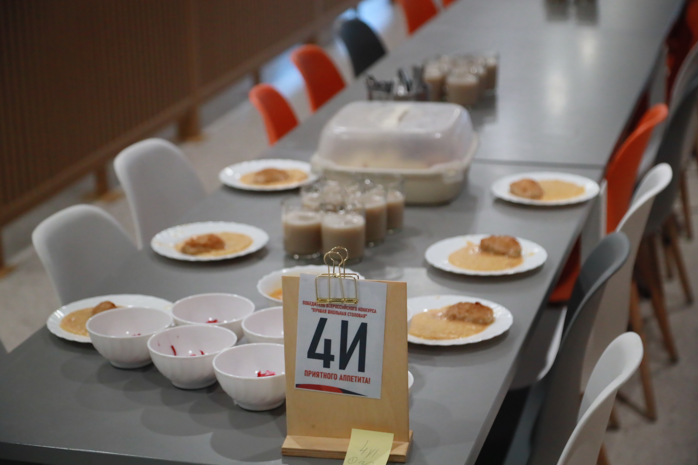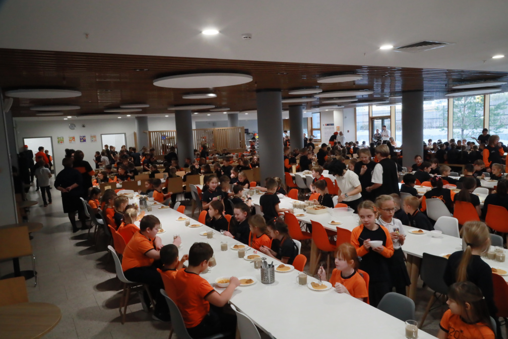 Как сообщила директор Анна Шмакова, сейчас в школе учатся 2363 ребёнка: самая большая наполняемость класса — 36 человек. Полная посадка в обеденном зале — 360–400 мест. Вовремя накрыть столы для такого количества детей достаточно сложно, но в организации с работой успешно справляются.