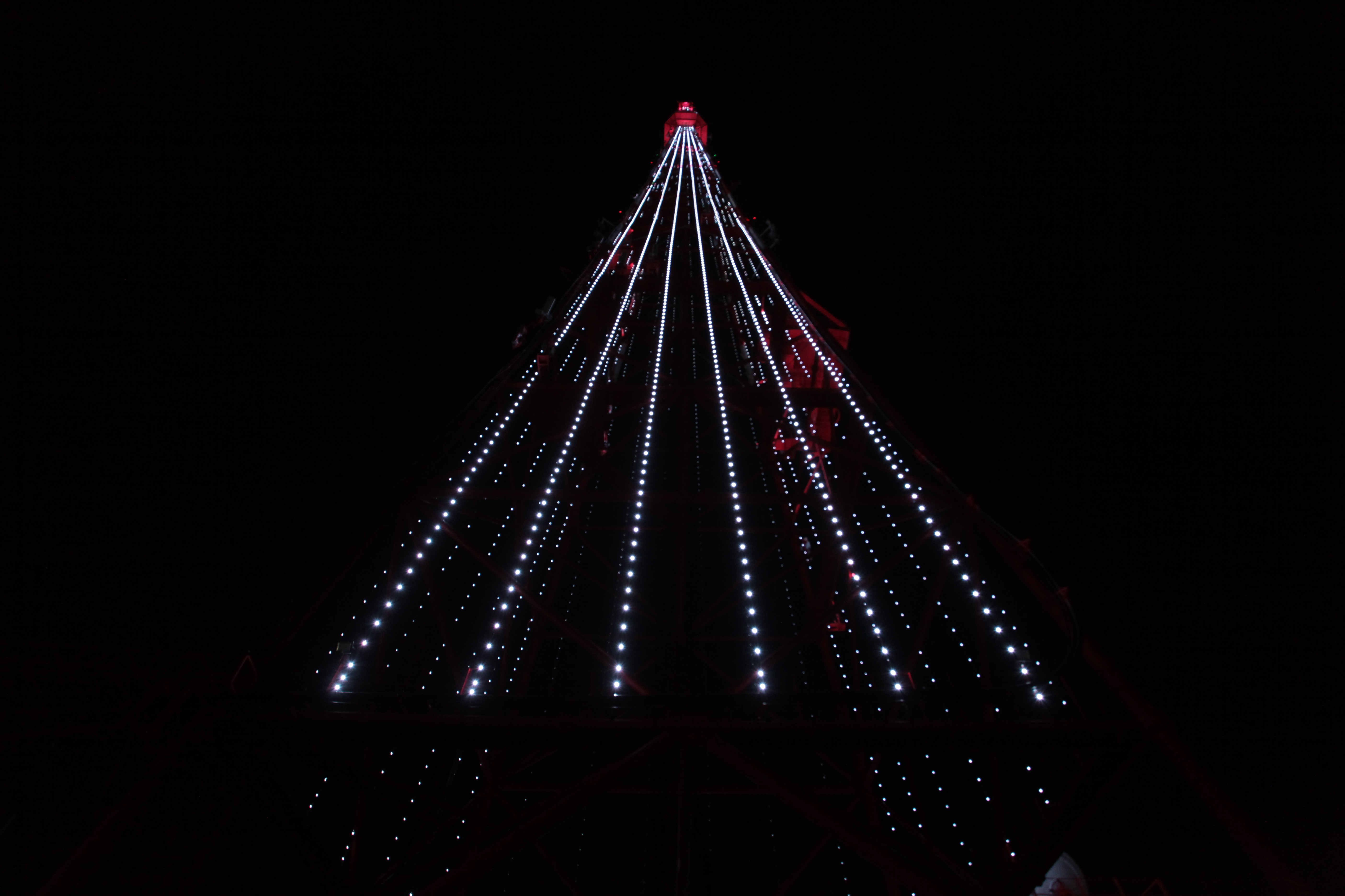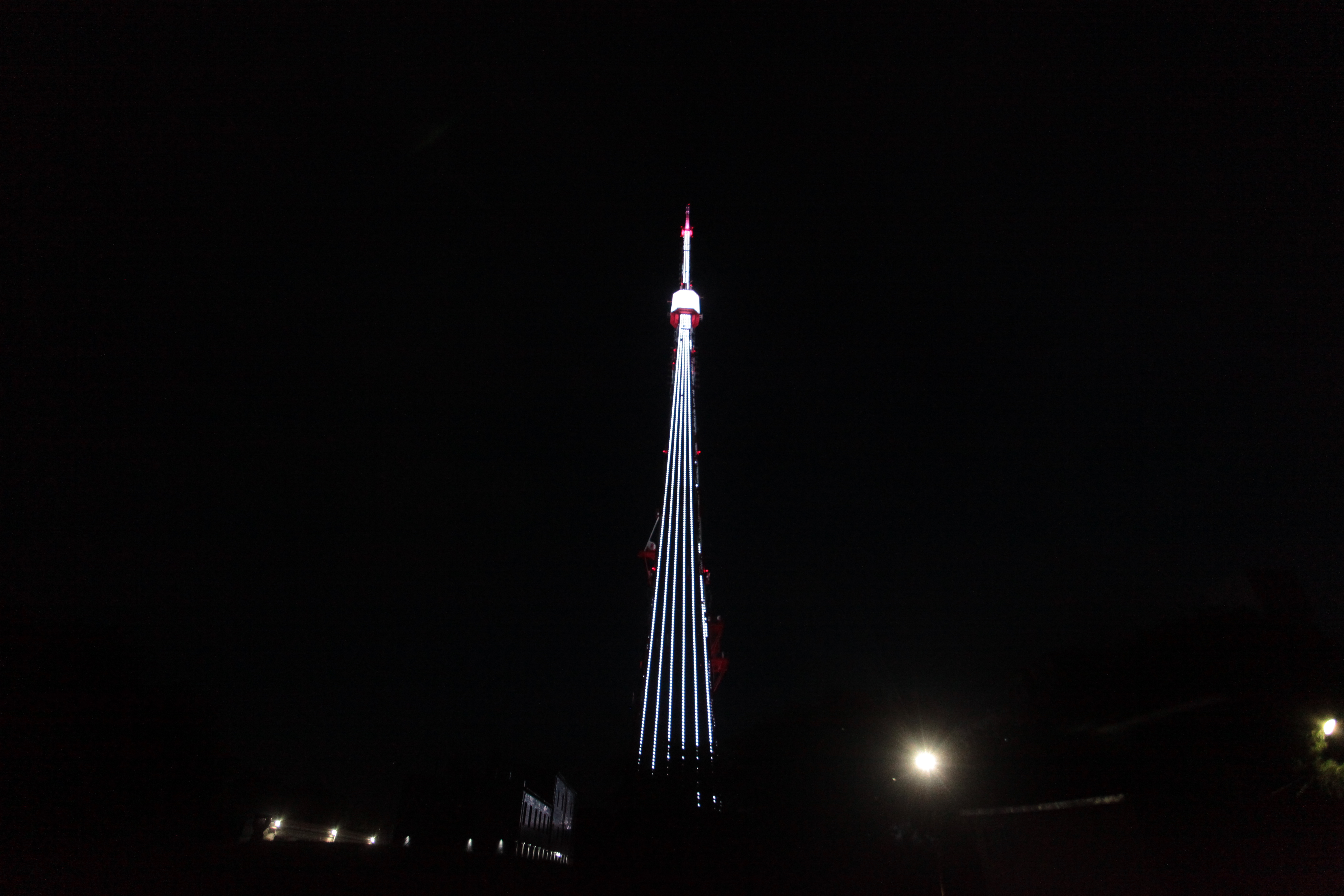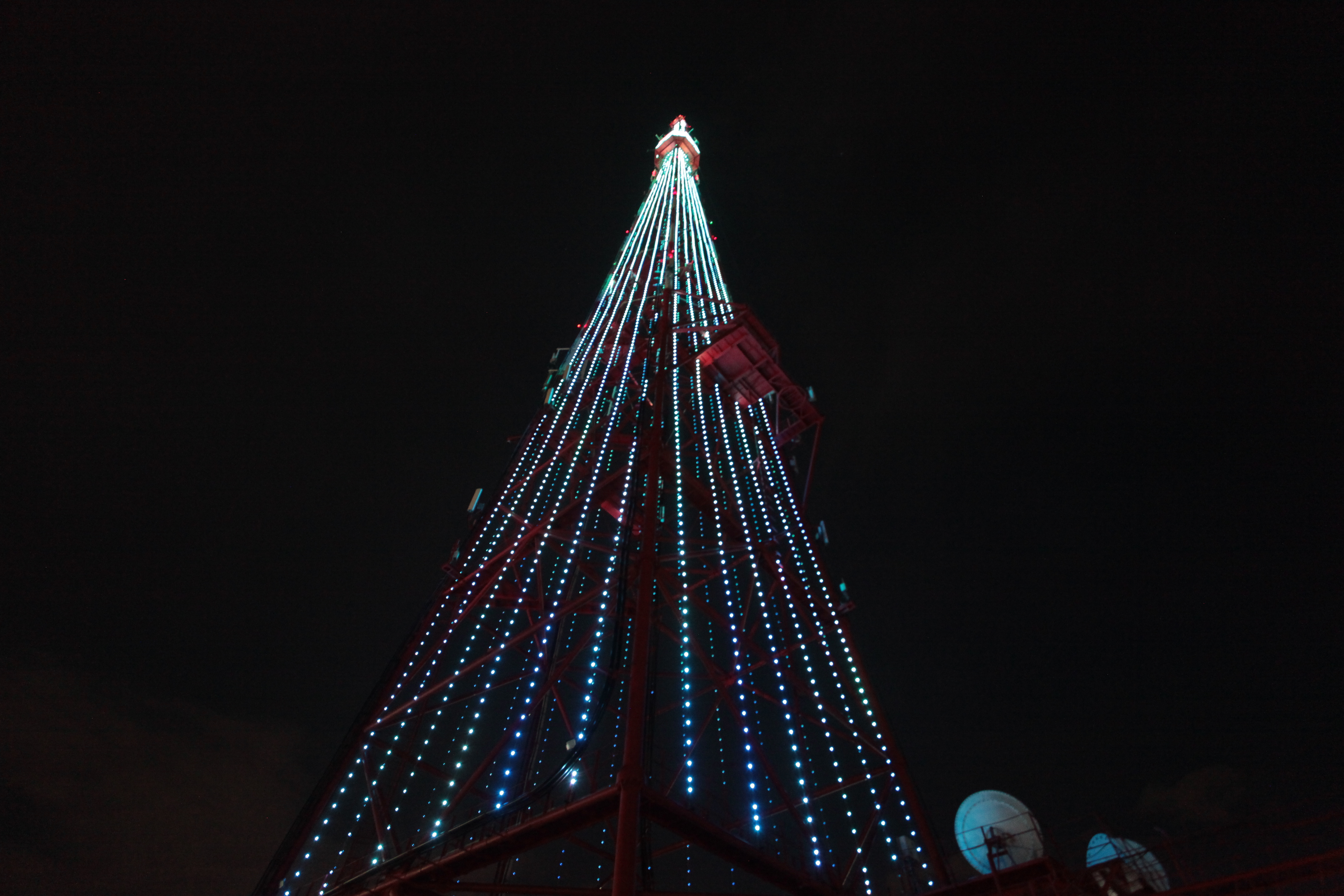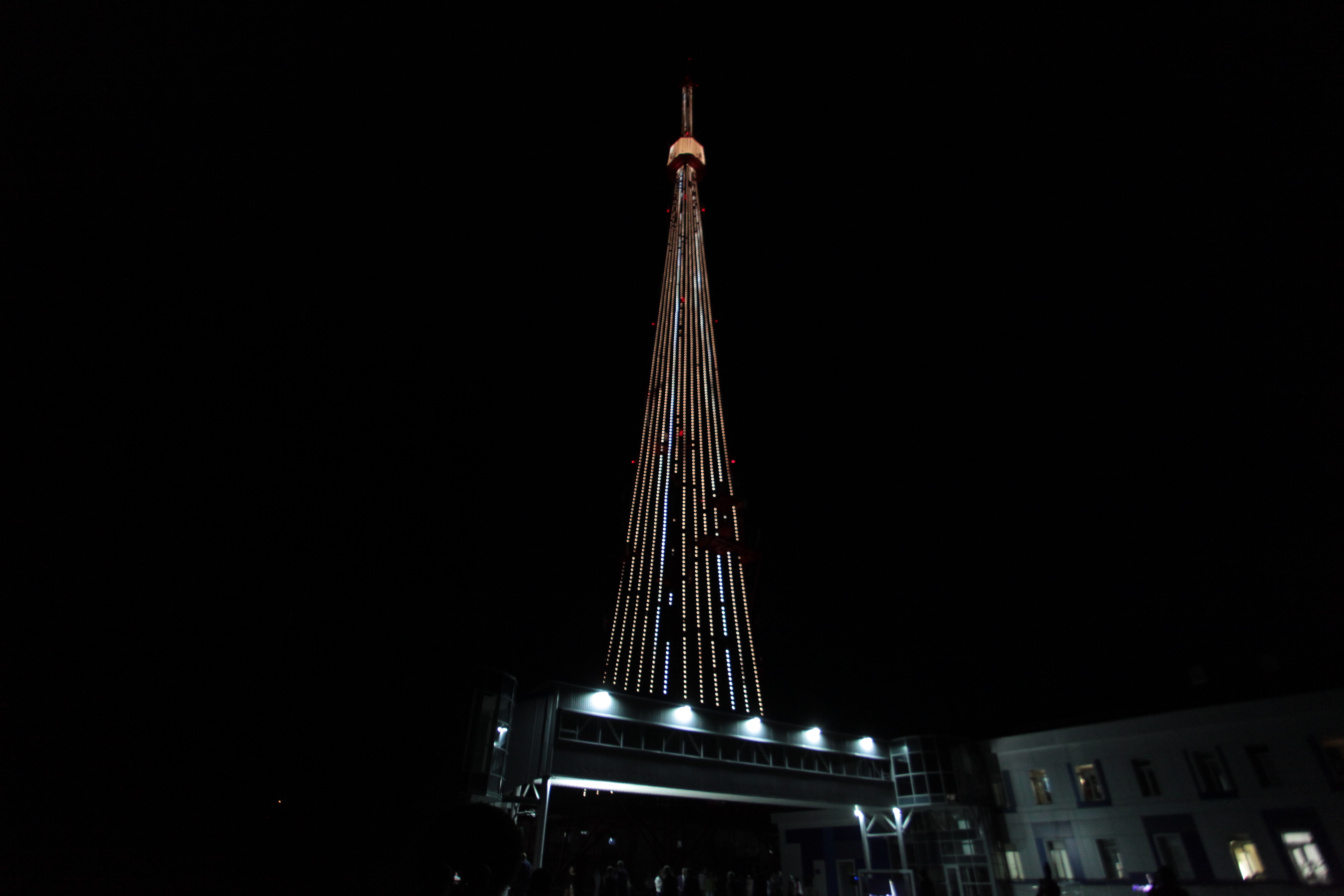 Ещё до начала монтажа филиал РТРС провёл большую подготовительную работу: в 2022 году башню покрасили, обследовали и рассчитали несущую способность. Этим летом с середины июля специалисты устанавливали новое оснащение. На 196-метровой вышке разместили 9060 светодиодных пиксельных светильников, шесть прожекторов и медиафасад на отметке от 140 до 148 метров. Расположенные на такой высоте надписи с экрана будут видны даже на большом расстоянии.