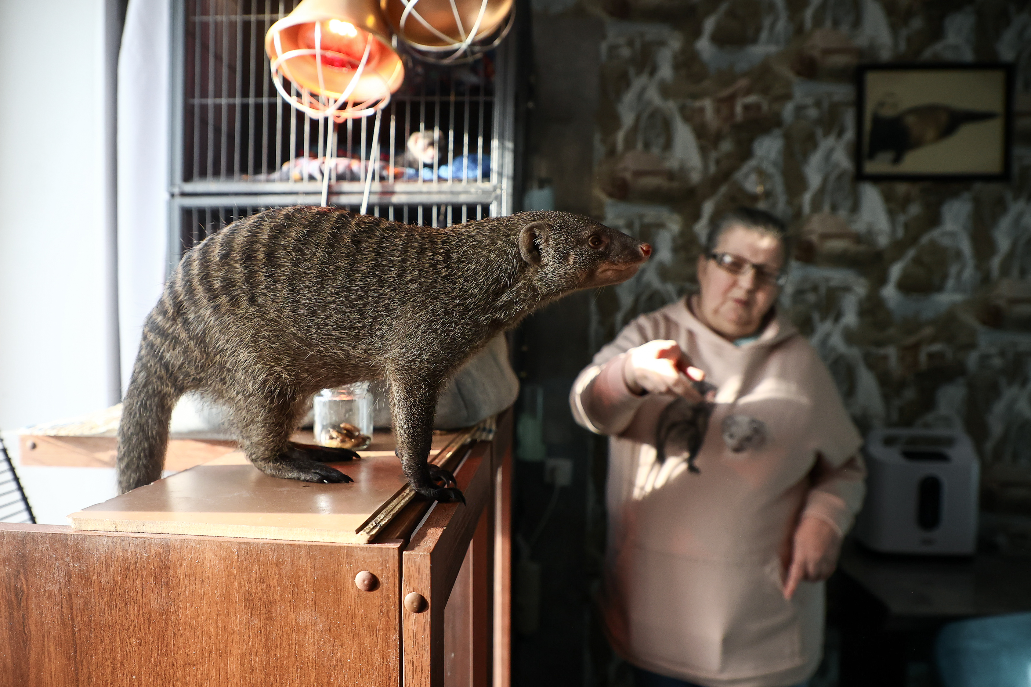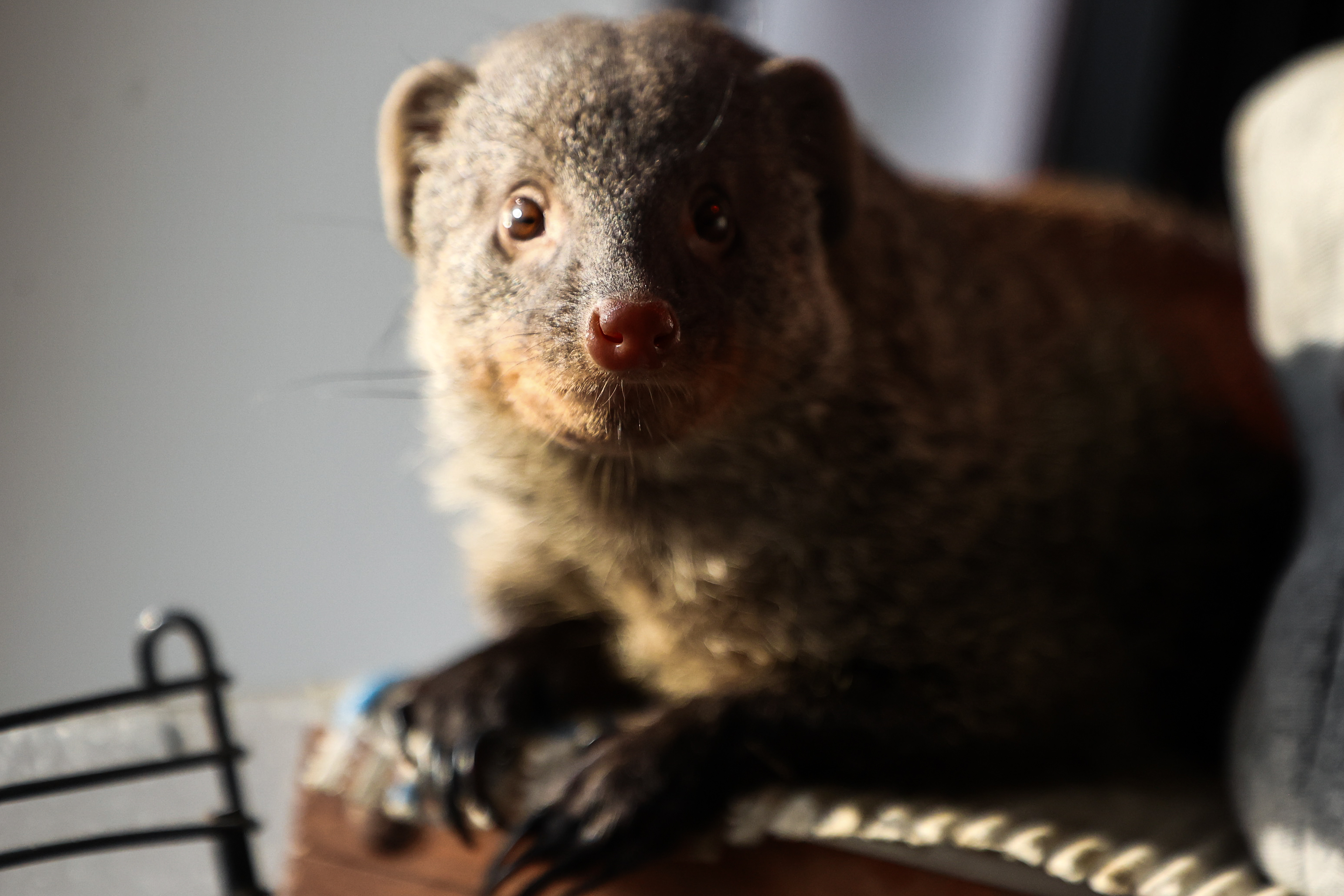 Мангусту Мумбе восемь лет. У него в рационе насекомые — саранча, тараканы, сверчки. Содержание куньих обходится Журавлёвым примерно в 15 тысяч в месяц.