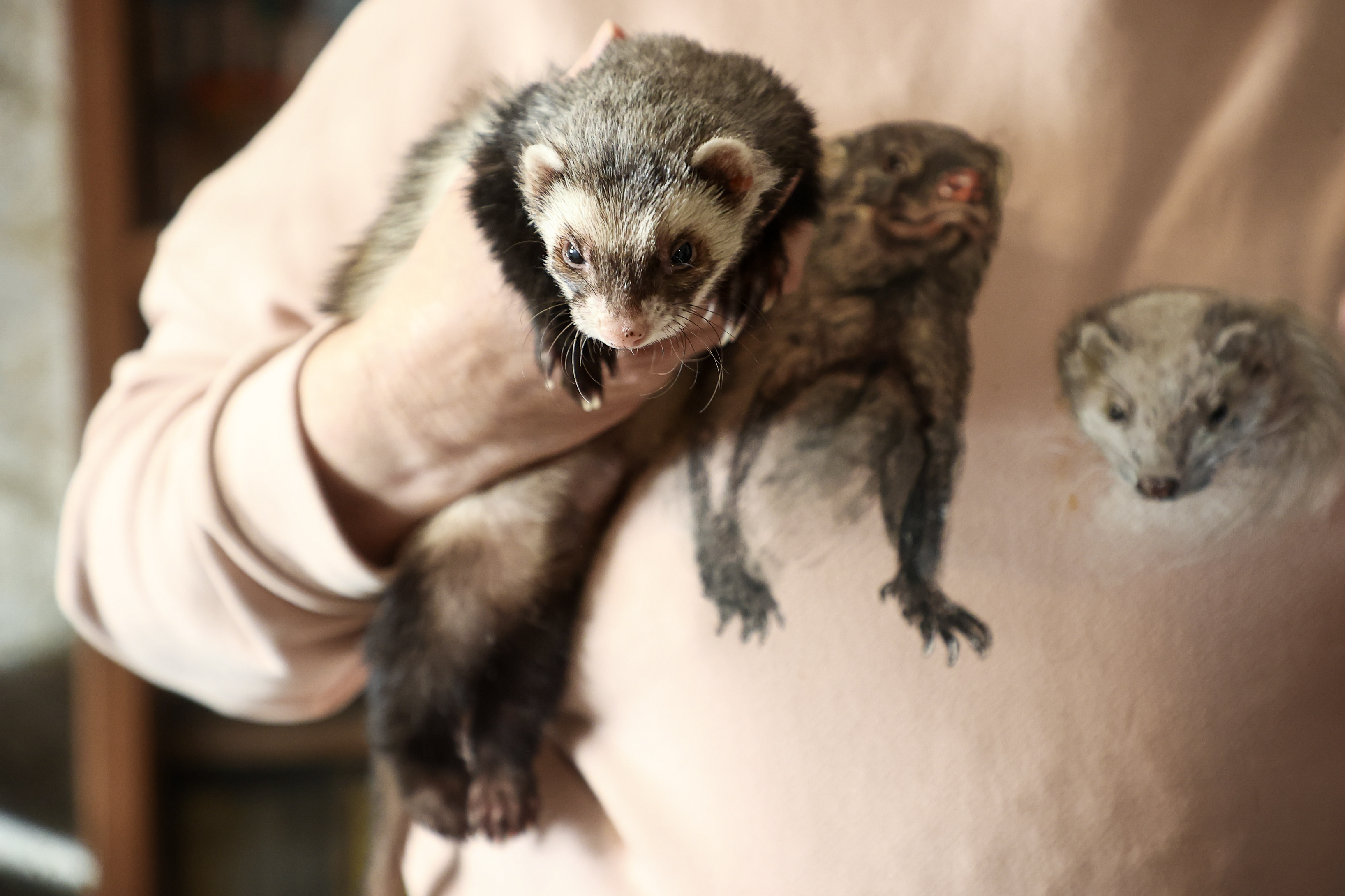 Трёх хищников — хорьков и мангуста — держит дома жительница Новосибирска. К зоозащитнице они попали после того, как от животных отказались прежние владельцы.