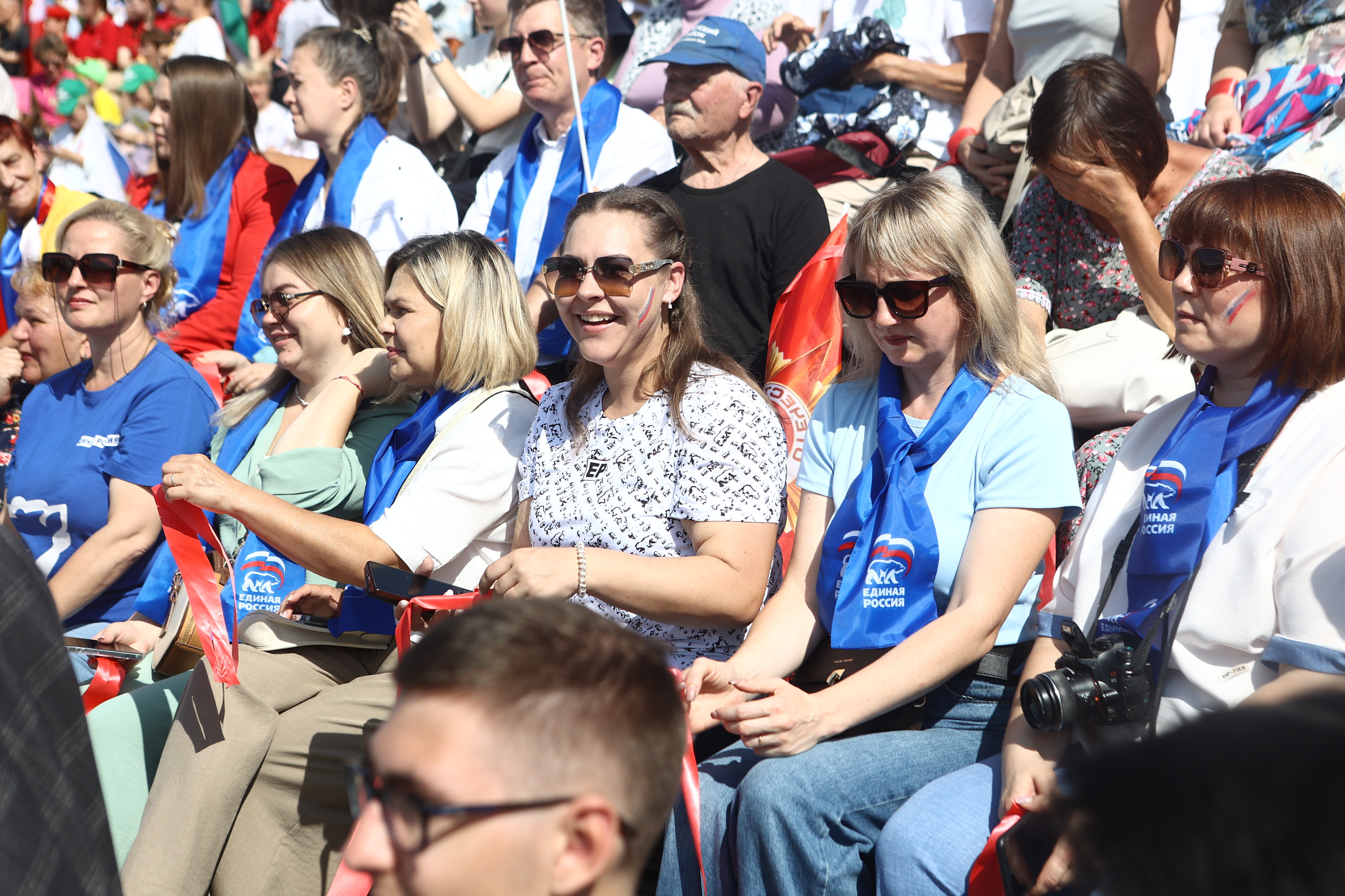 В честь праздника участники патриотического форума «Сибирь — территория мужества» устроили на Михайловской набережной выставку оружия, организовали мастер-классы по управлению БПЛА и оказанию медицинской помощи. Со сцены прозвучали стихи и песни об СВО.