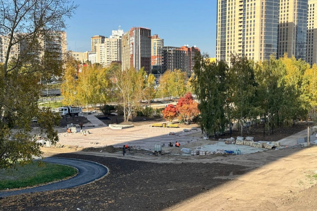 По словам главы города, на участке укладывают тротуары и велодорожки, устанавливают бордюры и опоры освещения, монтируют парковую мебель и детские игровые зоны. Уже готовы лестницы, проложены сети и ливнёвка.