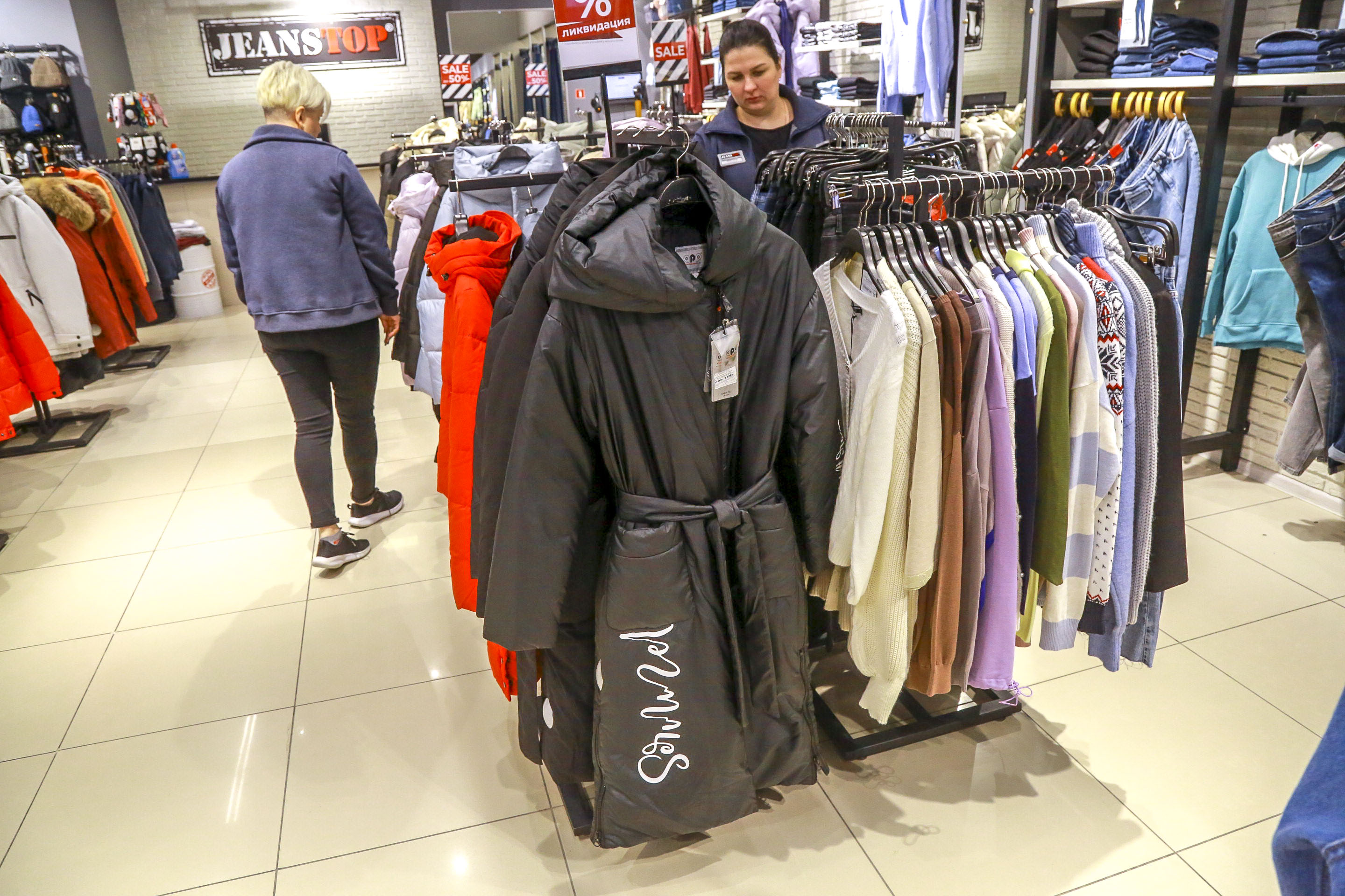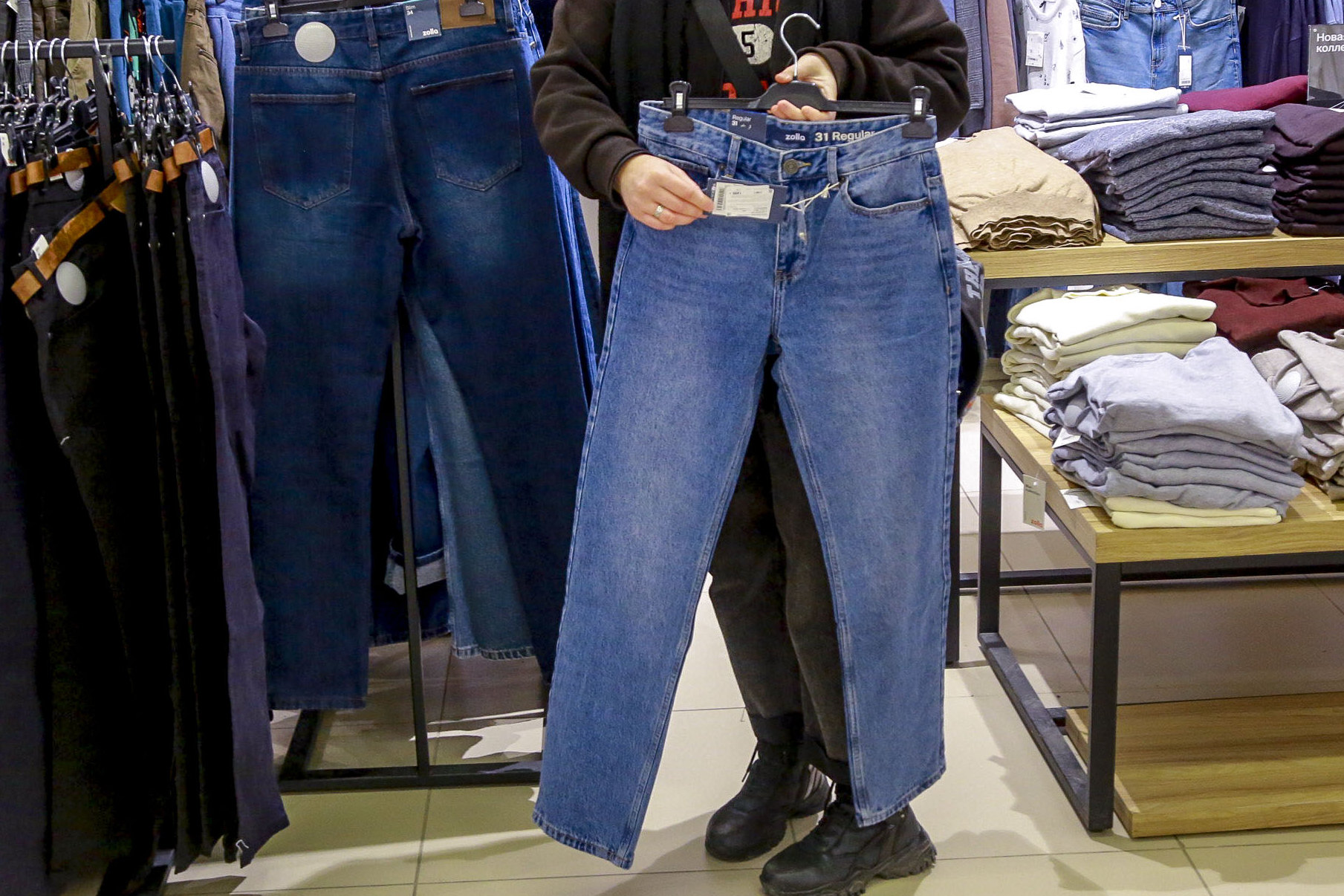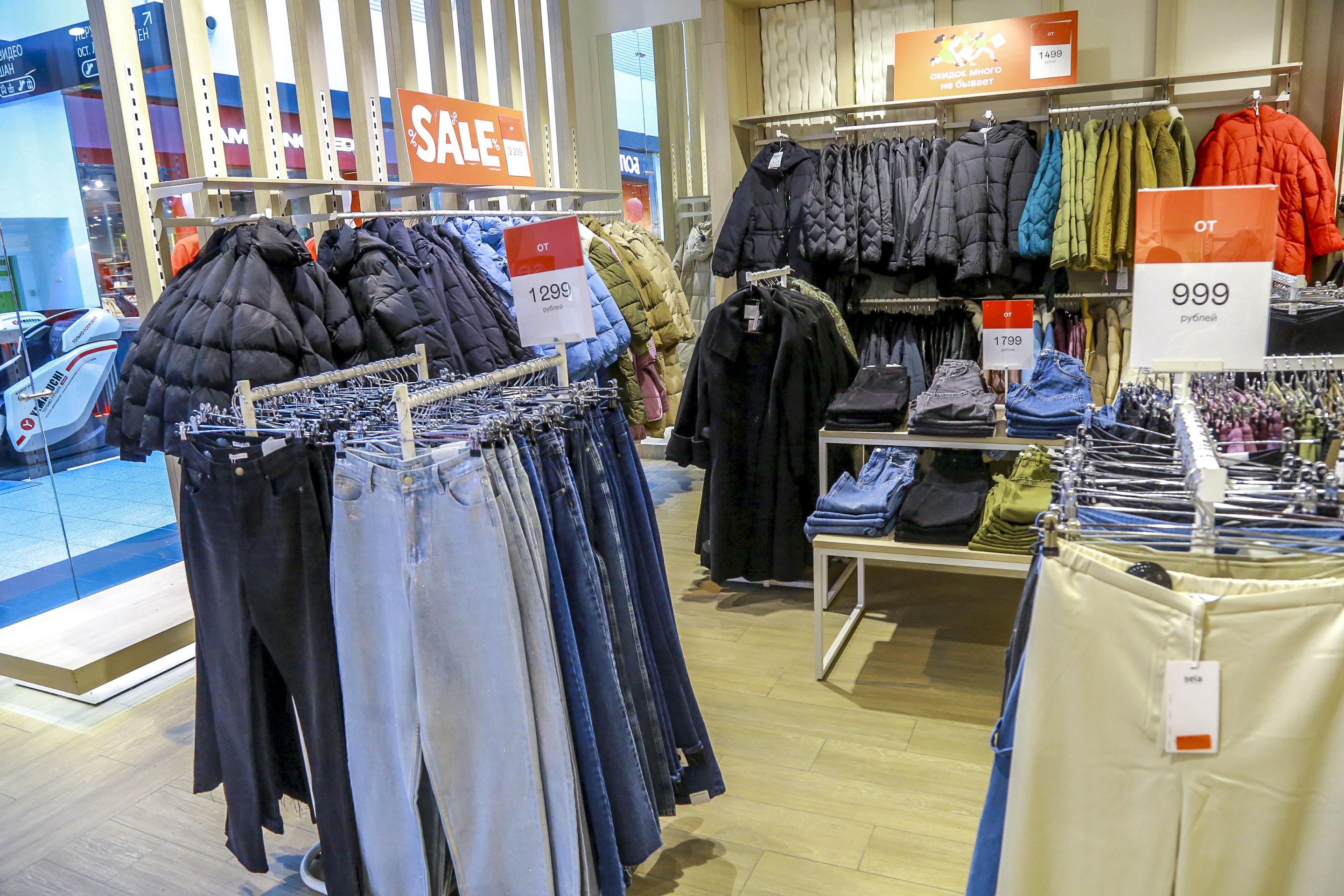 Мужские джинсы, которые до Нового года продавали за 2800 рублей, теперь предлагают за 1499 рублей. По словам консультантов, на старте распродажи оставались модели по 999 рублей, но их мгновенно расхватали.