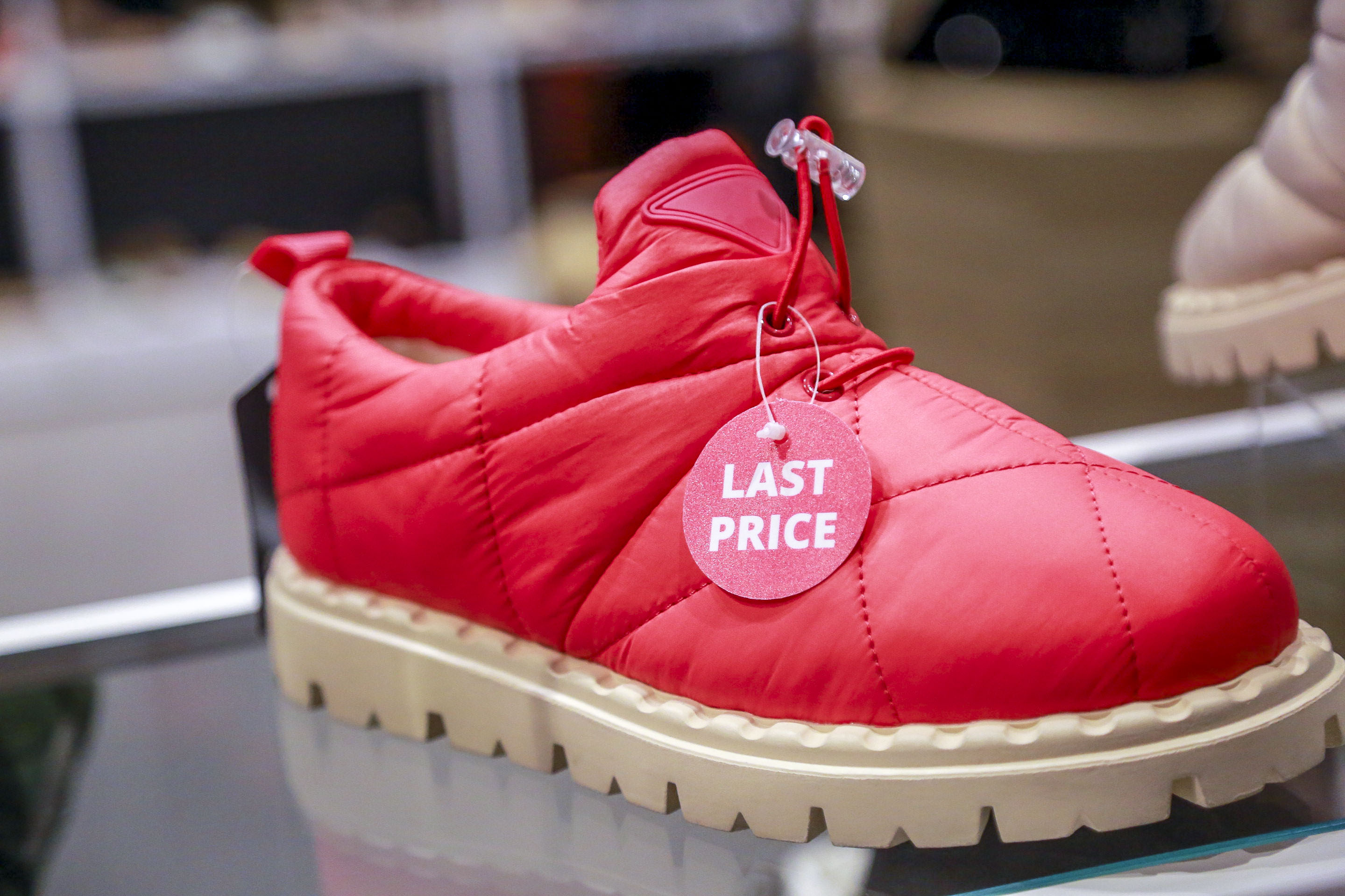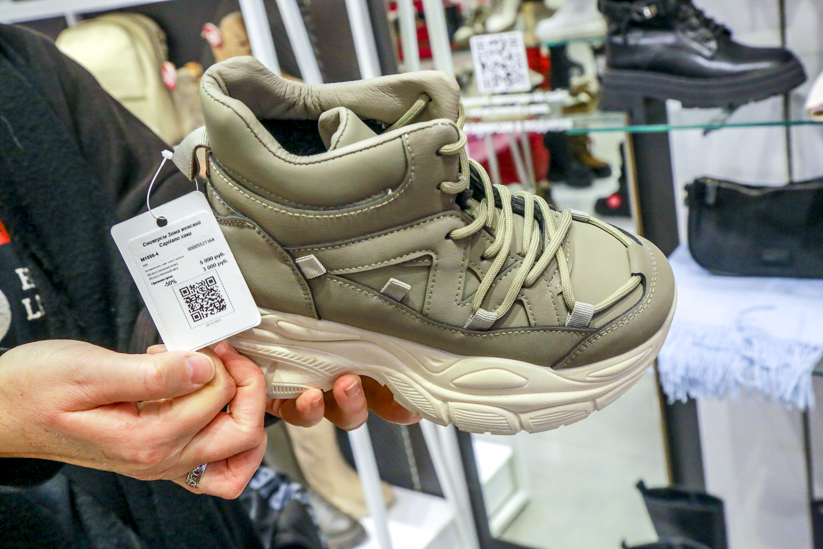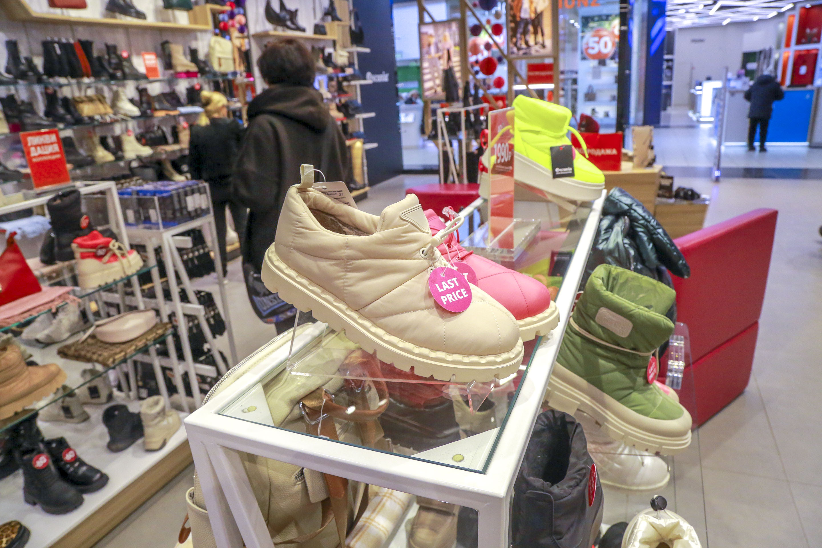 Чаще всего тотальные скидки в 50-70% касаются только части ассортимента. Дисконт в 80% вообще, как правило, точечный — на отдельные модели. Это относится как к верхней одежде, так и к обуви. Например, светлые сапоги-ботфорты, стоившие полгода назад 11 490 рублей, сейчас можно купить за 2300 рублей.