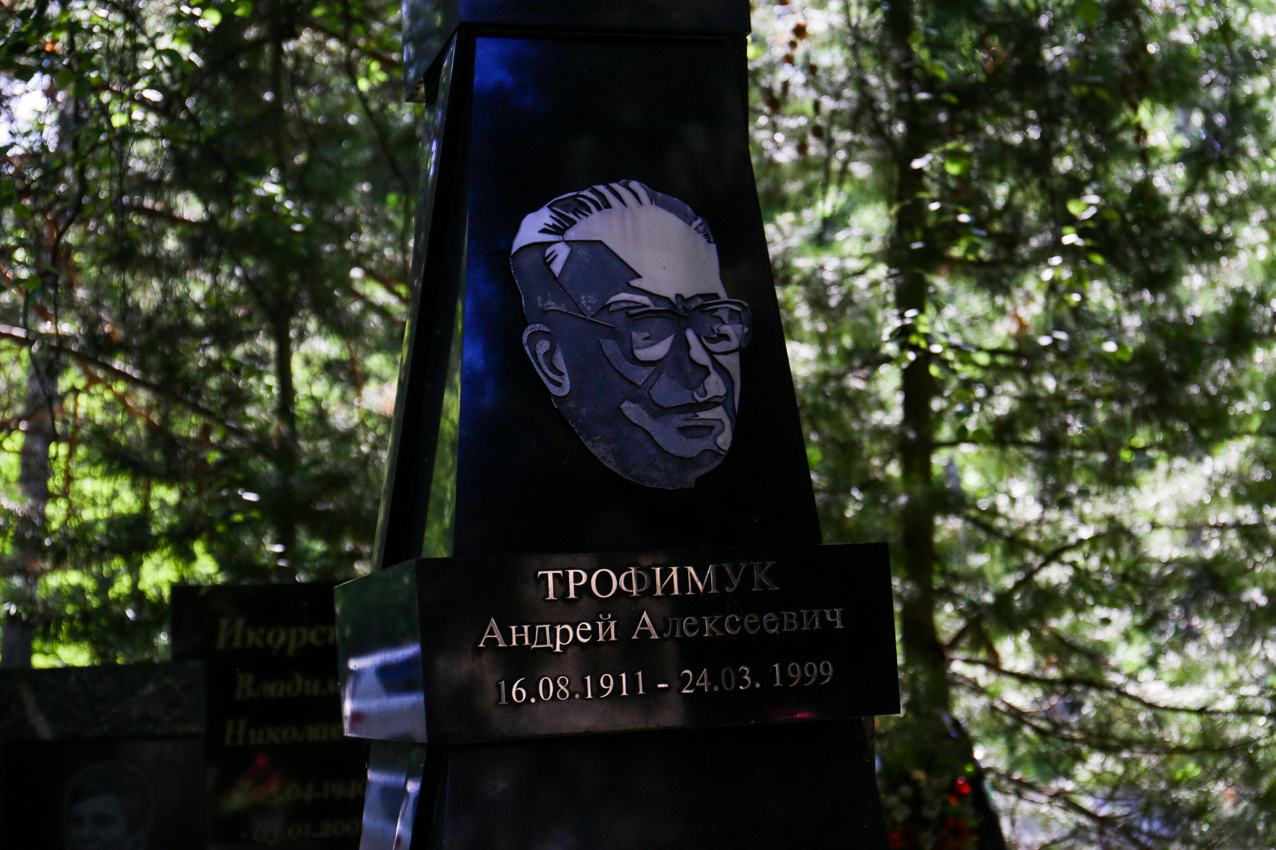 По соседству — ещё один оригинальный памятник: огромная трость, которая как будто бы проросла ветками, после того как её воткнули в землю. Это могила известного в Академгородке преподавателя и одного из «министров» знаменитого клуба «Под интегралом» Германа Безносова. Его называли «душой городка». Более 20 лет Герман Безносов работал учителем, из них последние 17 преподавал информатику в гимназии №3. Историю о том, как он победил в конкурсе красоты «Мисс Интеграл — 1965» среди девушек, перевоплотившись в красотку Земфиру, знают не только в Академгородке, но и далеко за его пределами.