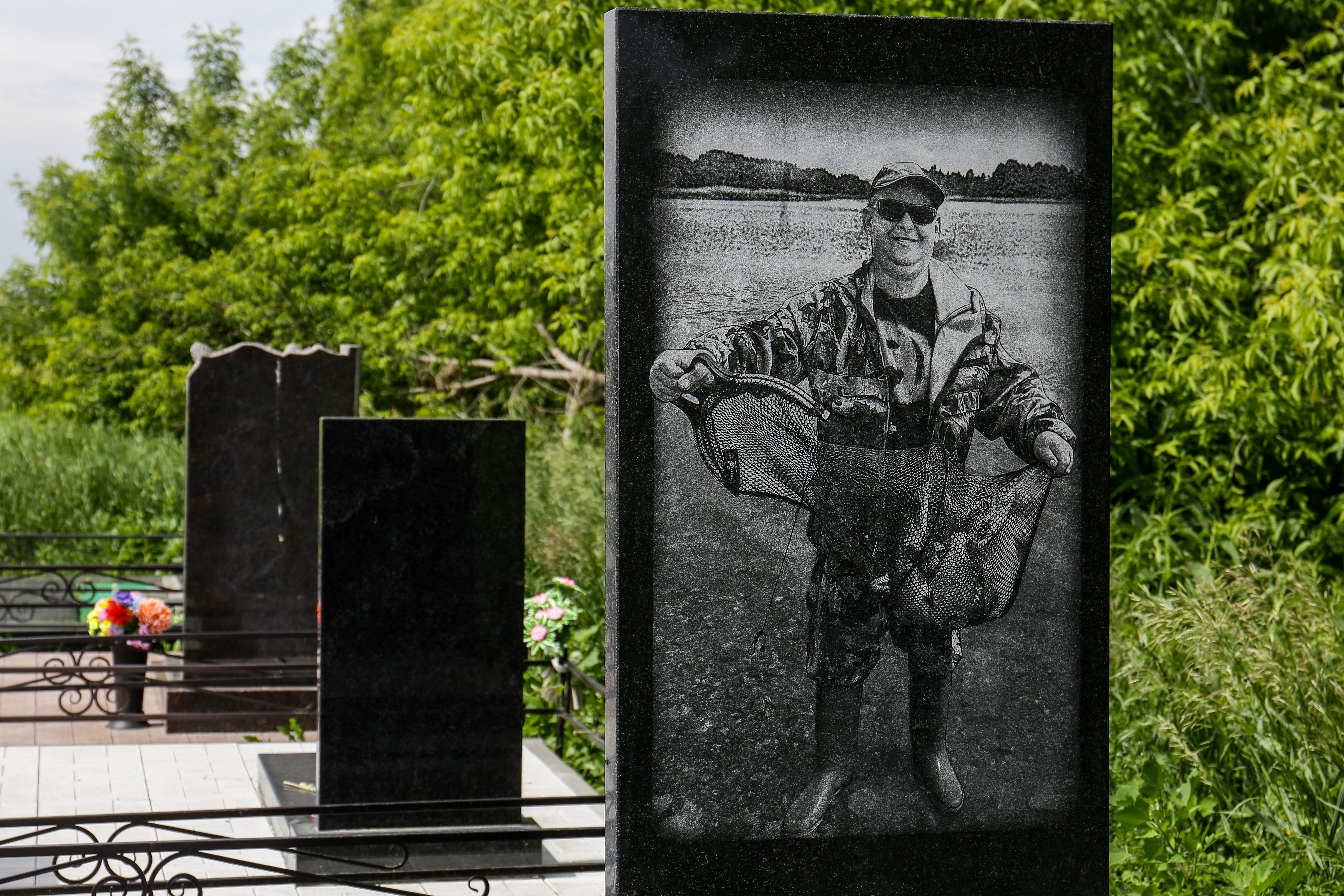 Кроме этого, есть и надгробия с изображением любимых хобби покойных. Так, один запечатлён на велосипеде, другой с богатым уловом на рыбалке. Встретился нам и необычный памятник в форме православной часовни. Можно предположить, что его установили по распоряжению усопшей.