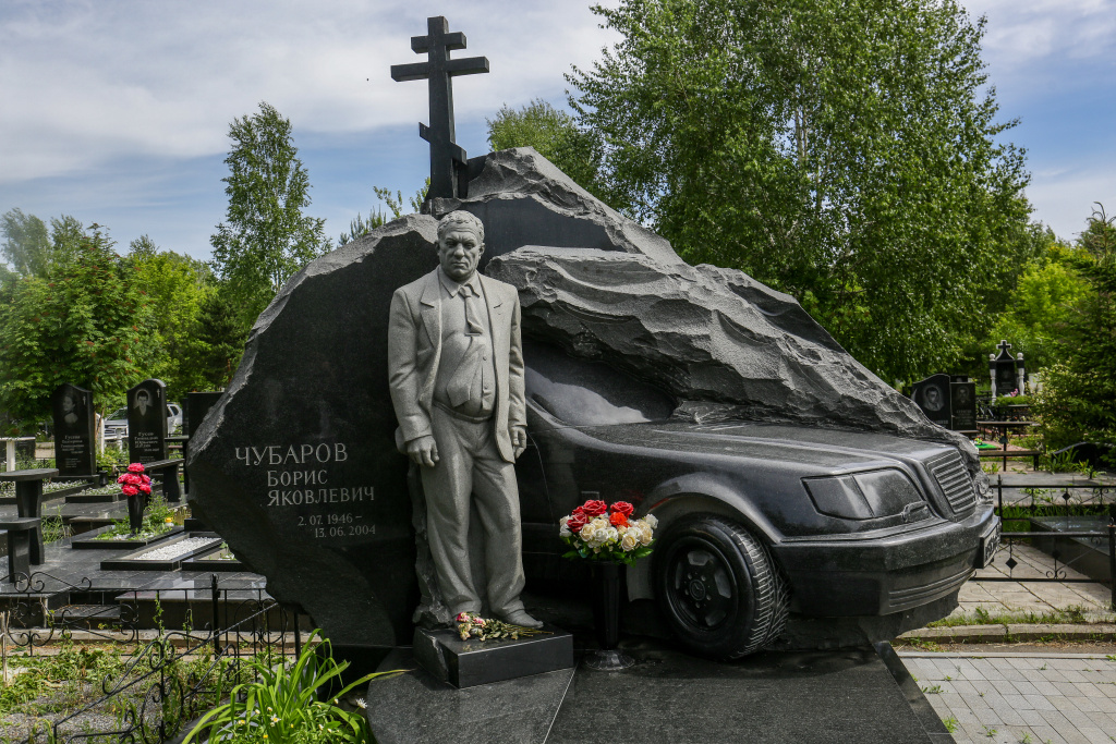 Недалеко от захоронения Екатерины Савиновой есть весьма примечательный памятник в виде статуи мужчины, стоящего рядом с «Мерседесом». Это могила бизнесмена и, как утверждают информированные источники, криминального авторитета Бориса Чубарова. Когда-то он владел ресторанами, барами и вёл гостиничный бизнес в Новосибирске. В узких кругах получил прозвище «Боря Газировка». Первые свои деньги он заработал на производстве напитков.