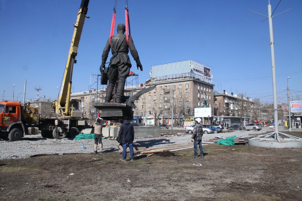 В Новосибирске продолжаются работы по реконструкции площади Маркса. Сегодня, 13 апреля, на новое основание в центре транспортного кольца установили шестиметровую скульптуру героя Великой Отечественной войны, маршала авиации Александра Покрышкина. Как это было — смотрите в нашем фотоотчёте.