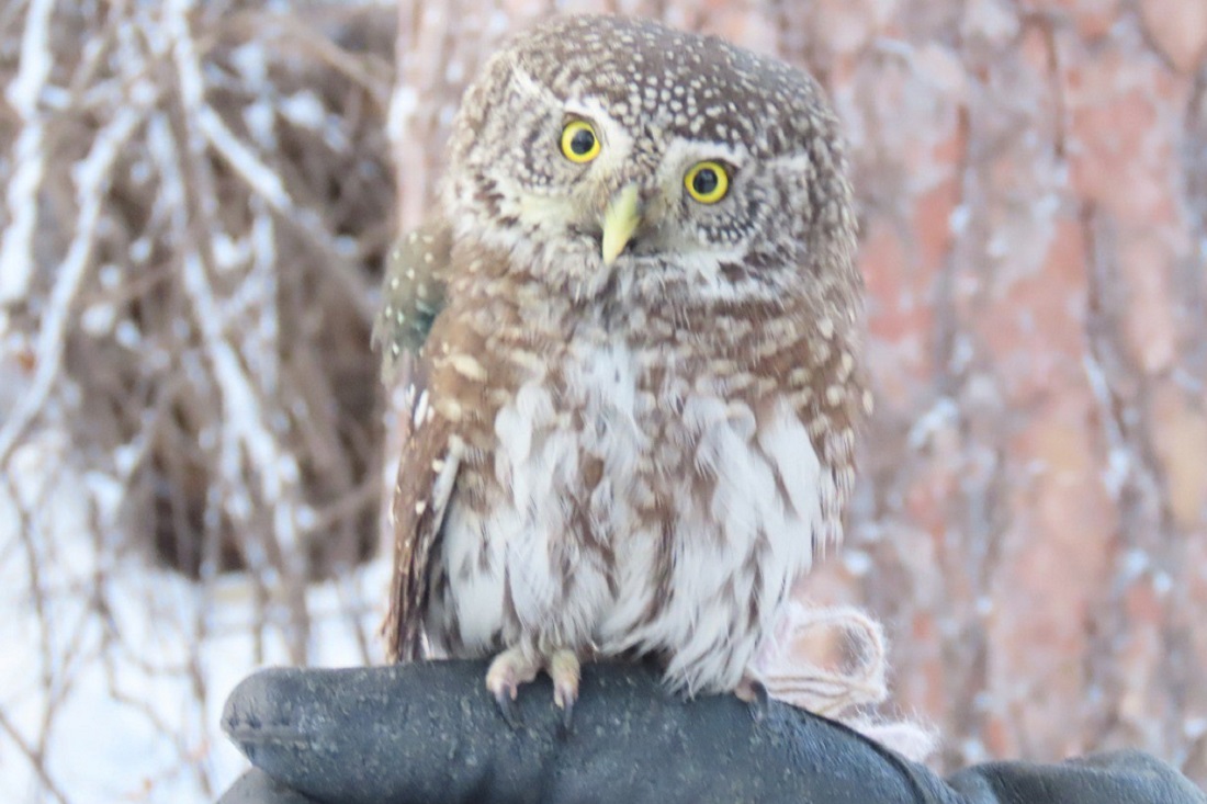 Сломавшего крыло воробьиного сычика спасла волонтёр из Академгородка