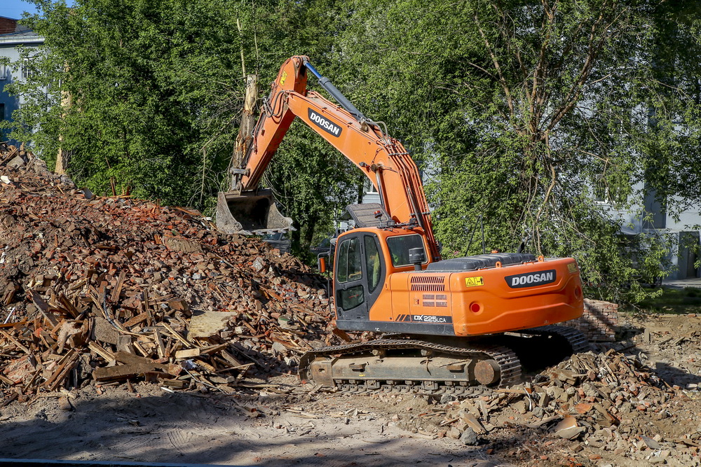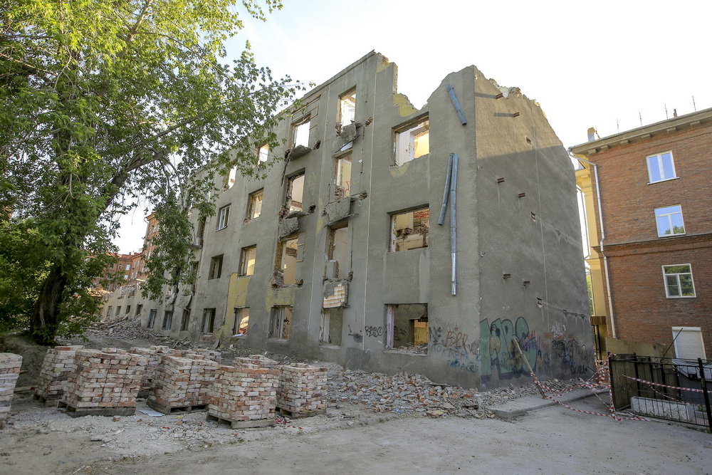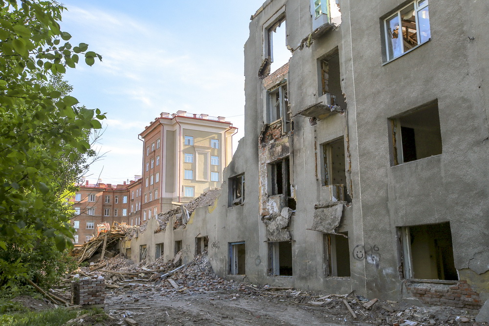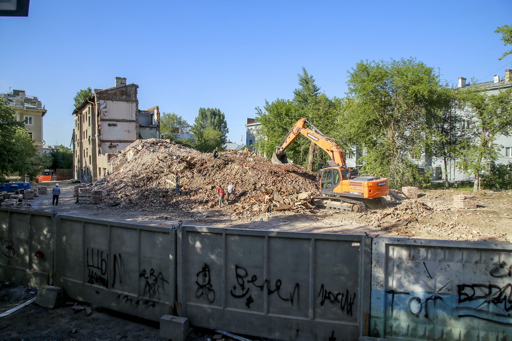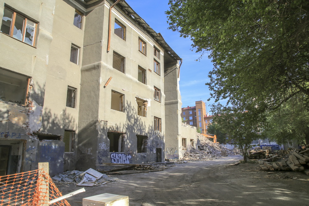 Дом №5 на улице Станиславского, где было 48 квартир, признали аварийным и подлежащим сносу в 2016 году. К зданию относится земельный участок площадью более 4000 кв. метров. В прошлом году часть жильцов получили квартиры, часть — денежное возмещение. Осенью дом отключили от инженерных систем, и всю зиму он простоял неприкаянным. Снос начался на прошлой неделе. Четырёхэтажку обнесли бетонным забором и подключили спецтехнику.