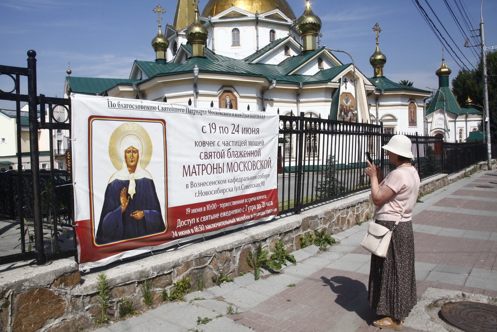 В Новосибирск доставили частицу мощей блаженной Матроны Московской. Их разместили в Вознесенском кафедральном соборе. К ковчегу выстроилась очередь.