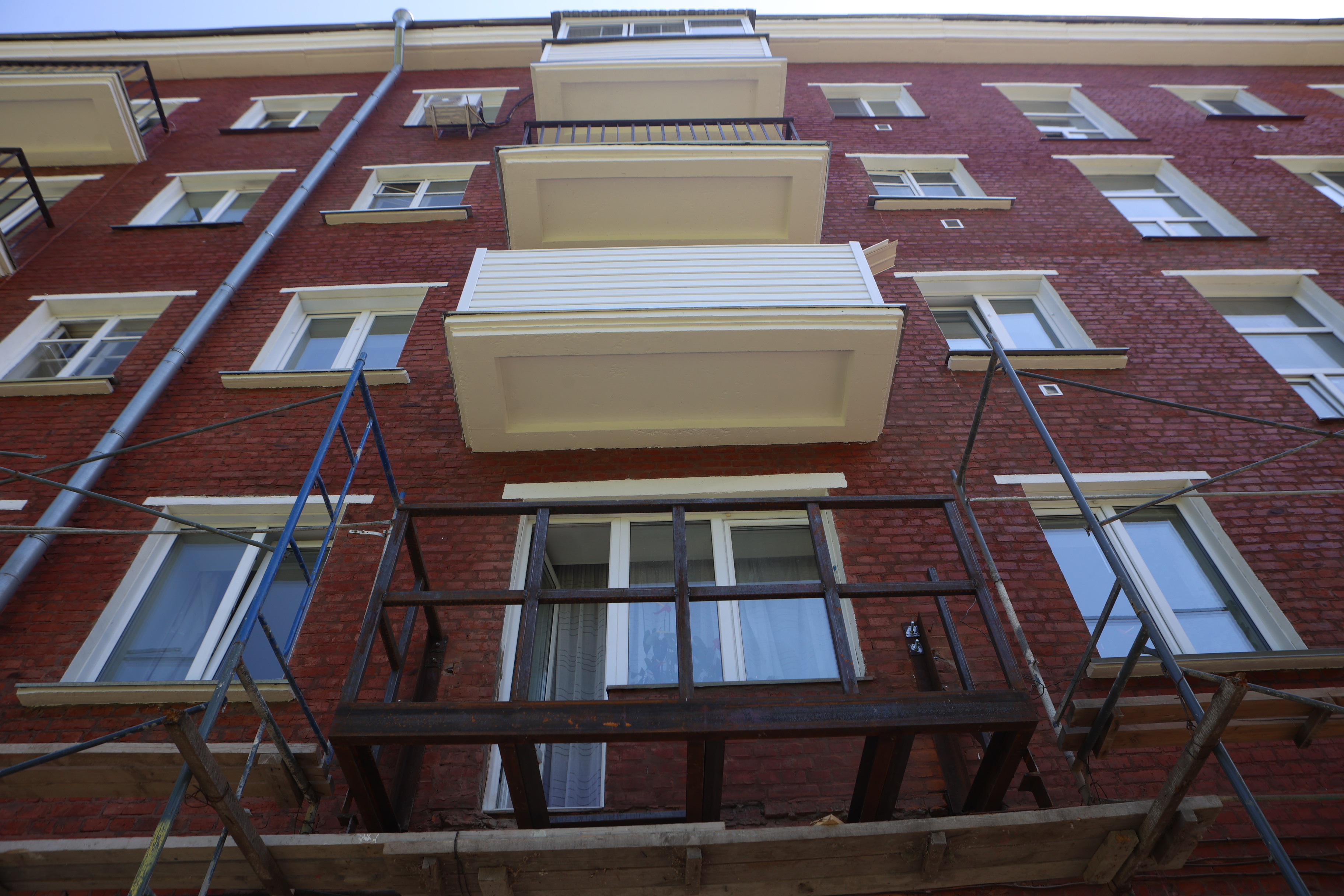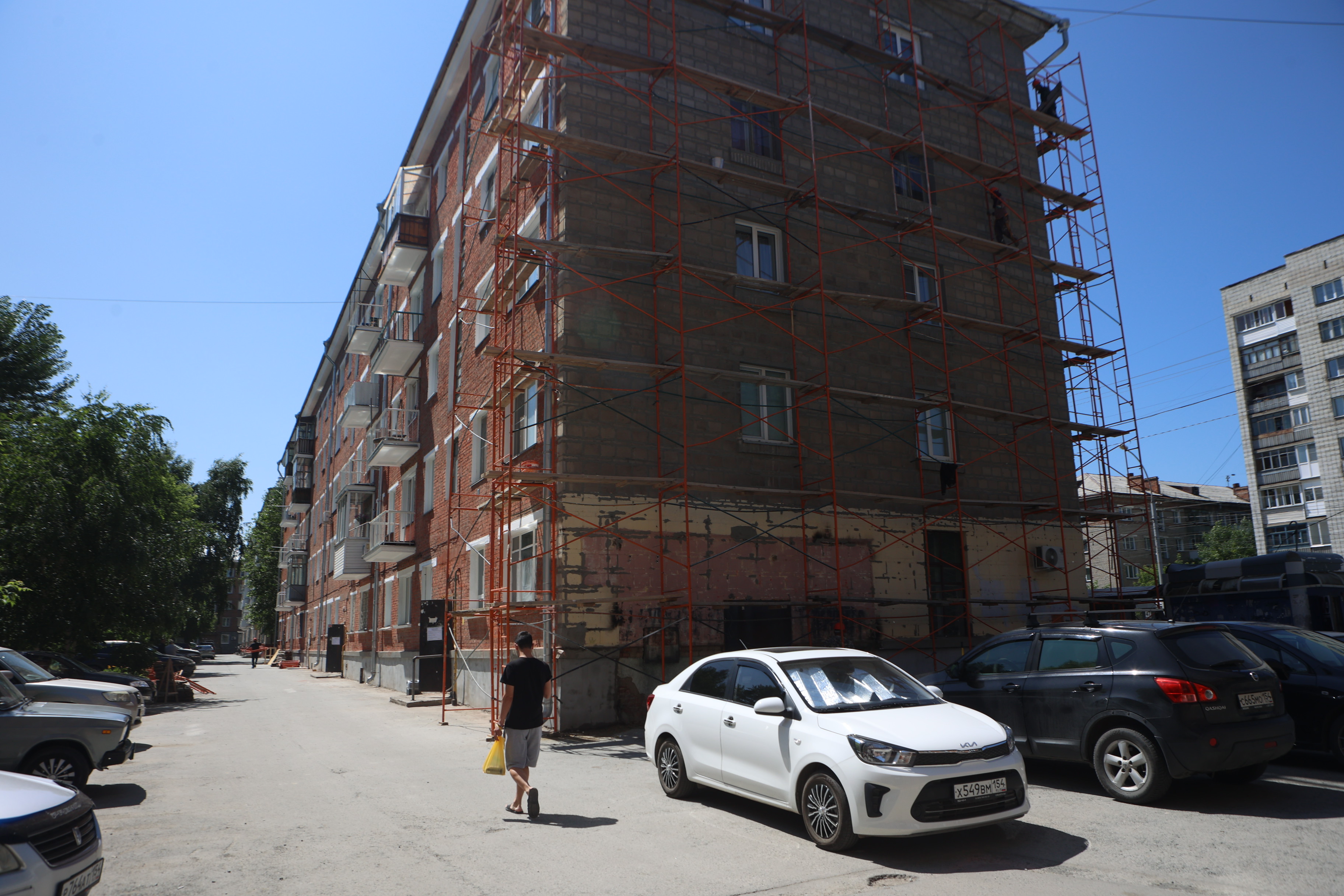 Обновление двух хрущёвок на Блюхера предусматривает масштабные работы. Строители выполняют расшивку и затирку швов, ремонтируют балконные плиты, расчищают щётками стены, штукатурят их, обрабатывают водоотталкивающим покрытием, красят откосы. В этом году 110 домов получат новые фасады по региональной программе капремонта. В целом она затронет 526 многоэтажек: большая часть из них — в Новосибирске.