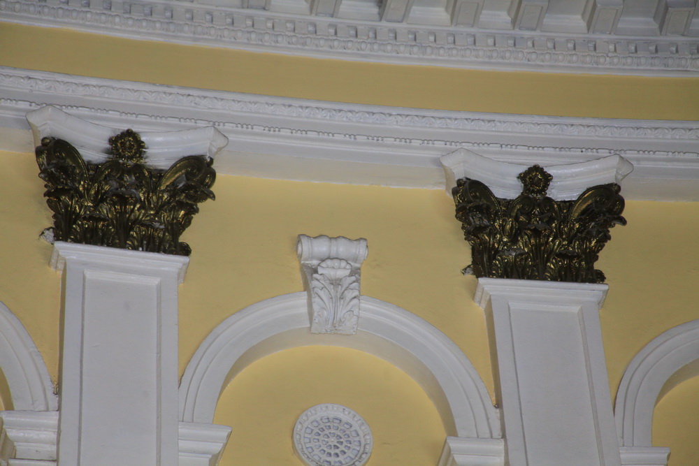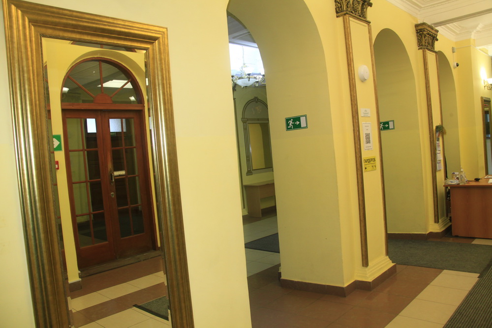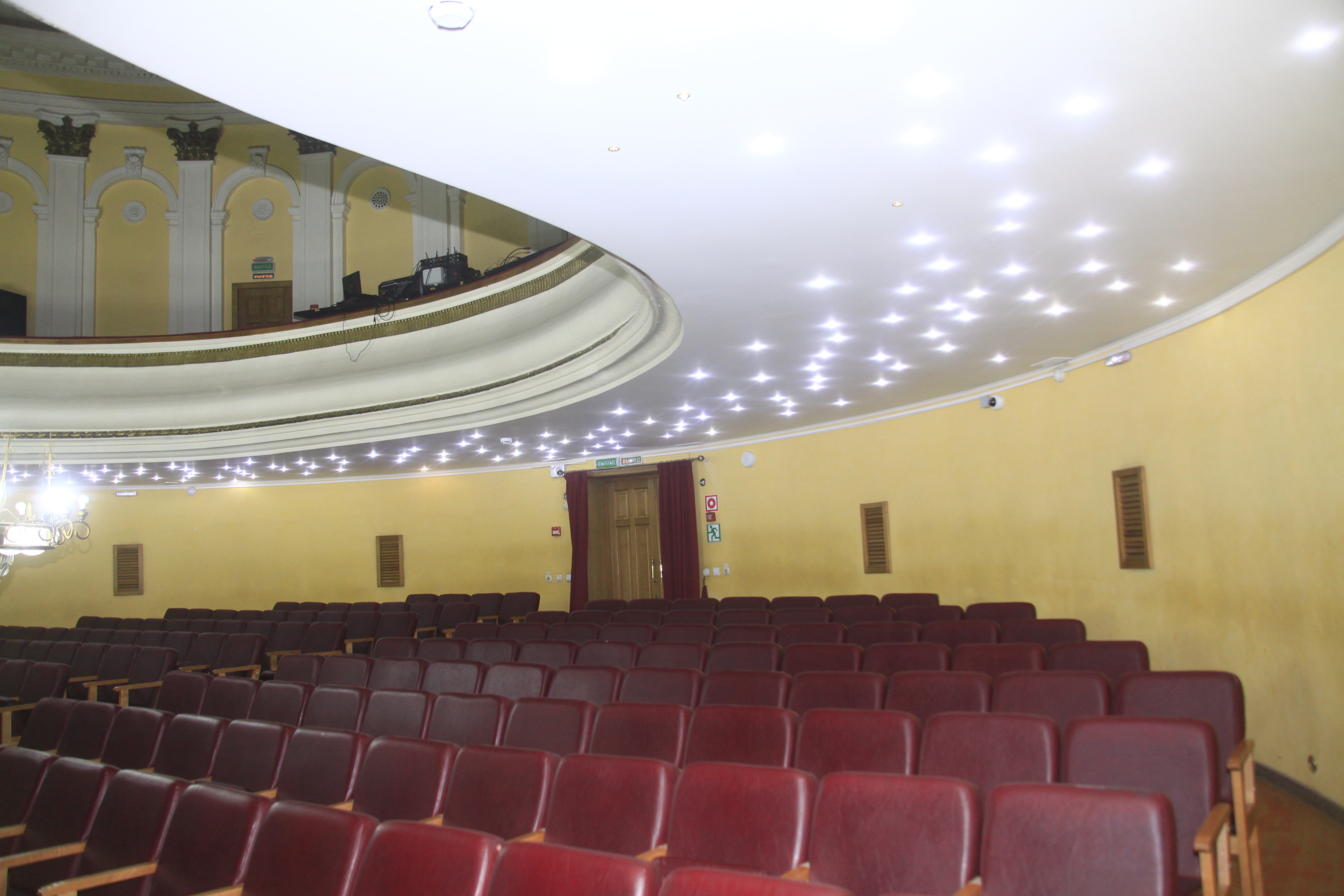 В зрительном зале более 300 мест. Он обладает прекрасной акустикой благодаря своей геометрии, арочной форме и балкону, идущему по полукругу. Кстати, в верхней части можно разместить больше сотни посетителей, но её не используют из-за несоответствия противопожарным нормам.