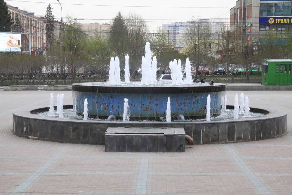 Проект предусматривал также парковую зону с двумя фонтанами: со стороны Красного проспекта и с тыла. Как у ДК Горького на Богдашке. Одно из этих сооружений исправно работает. В 2ГИС оно обозначено как «Фонтан любви».