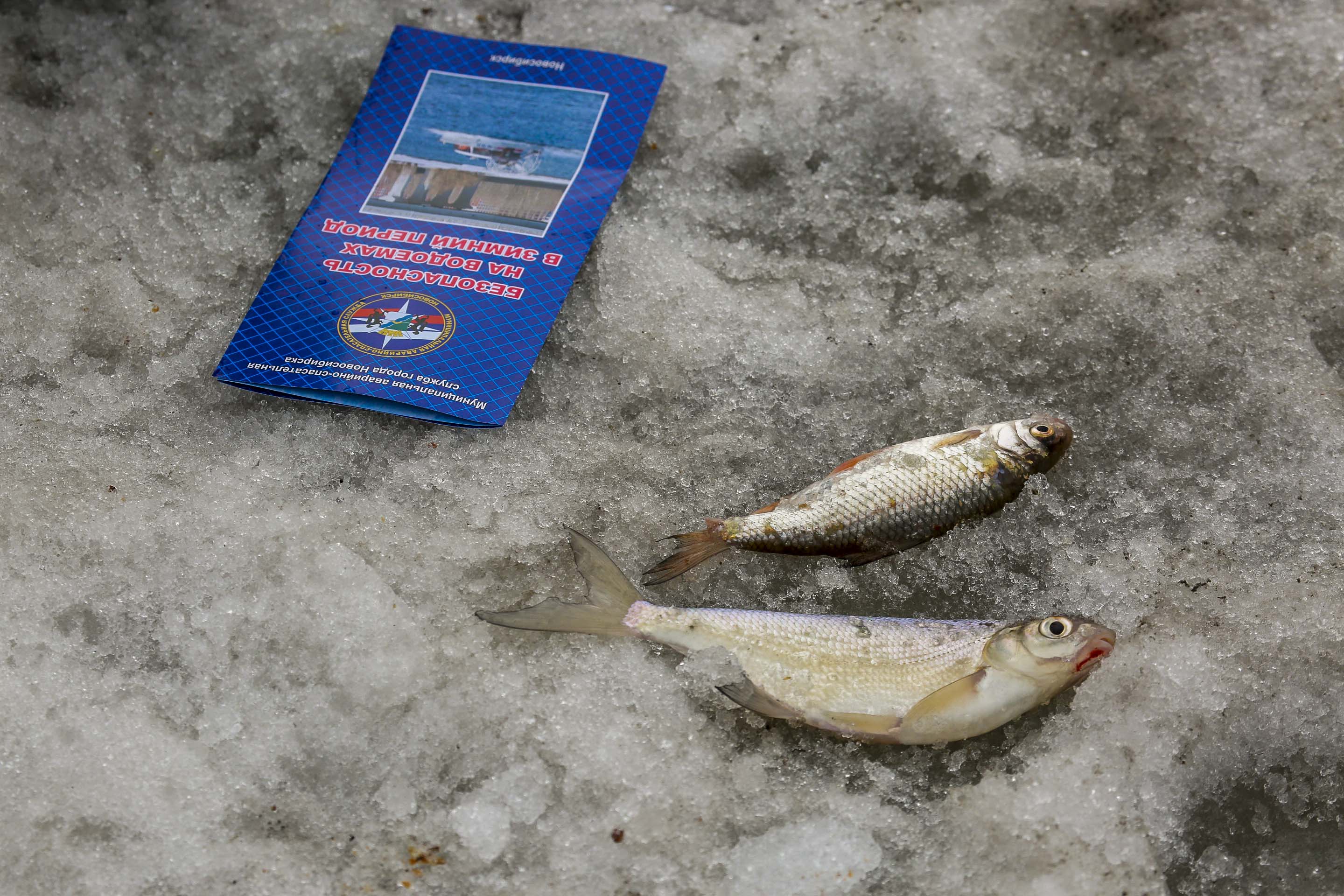 Спасатели вышли на лёд, чтобы предупредить рыбаков об опасности. Местами толщина покрытия ещё достаточно большая, но структура уже рыхлая. Передвигаться по такой поверхности не рекомендуют.