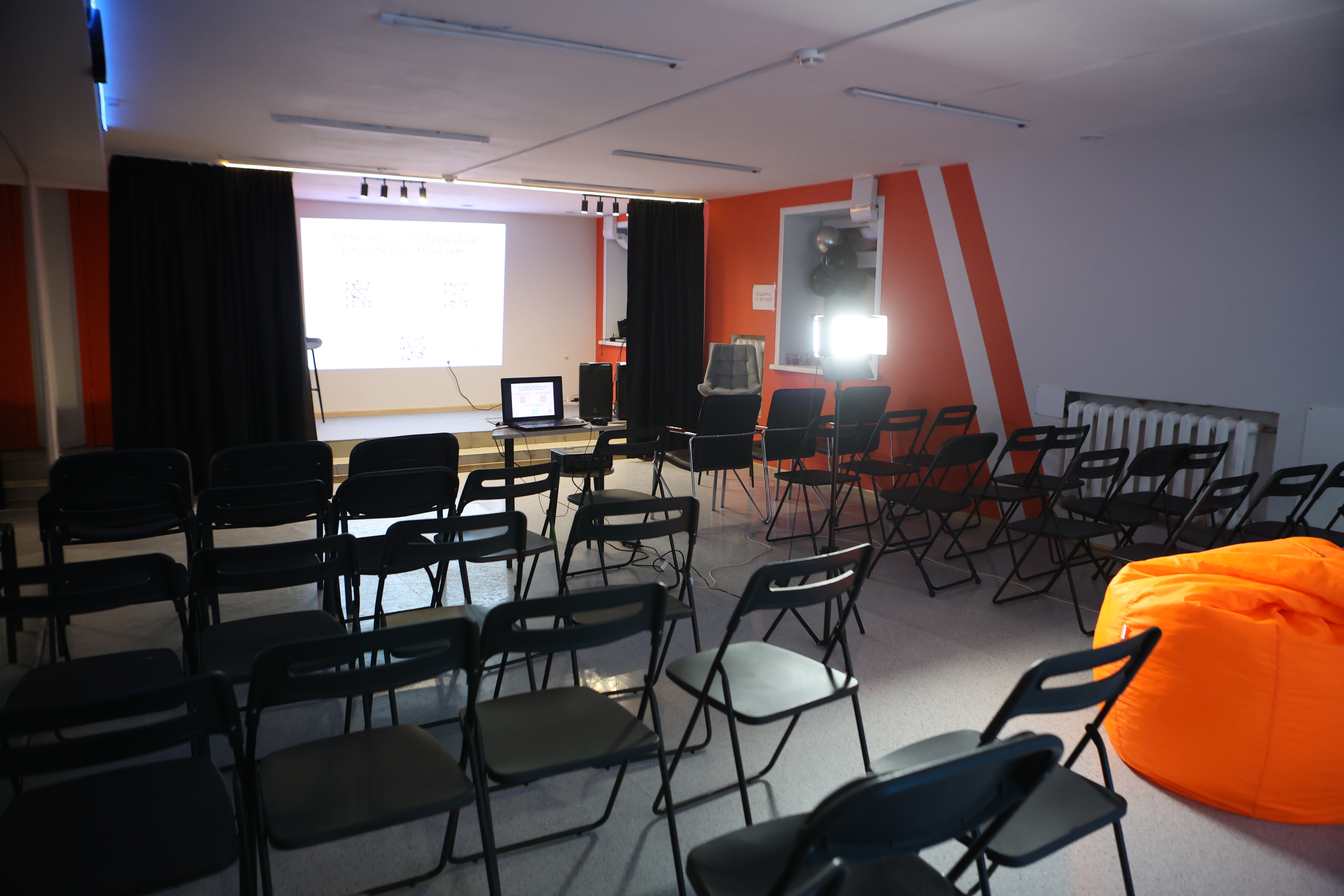 «Мы используем здесь принципы хромотерапии, цветотерапии, светового сопровождения наших мероприятий, чтобы был больший эффект и воздействие от проводимых нами событий», — рассказала директор молодёжного центра «Современник» Анастасия Калмыкова.