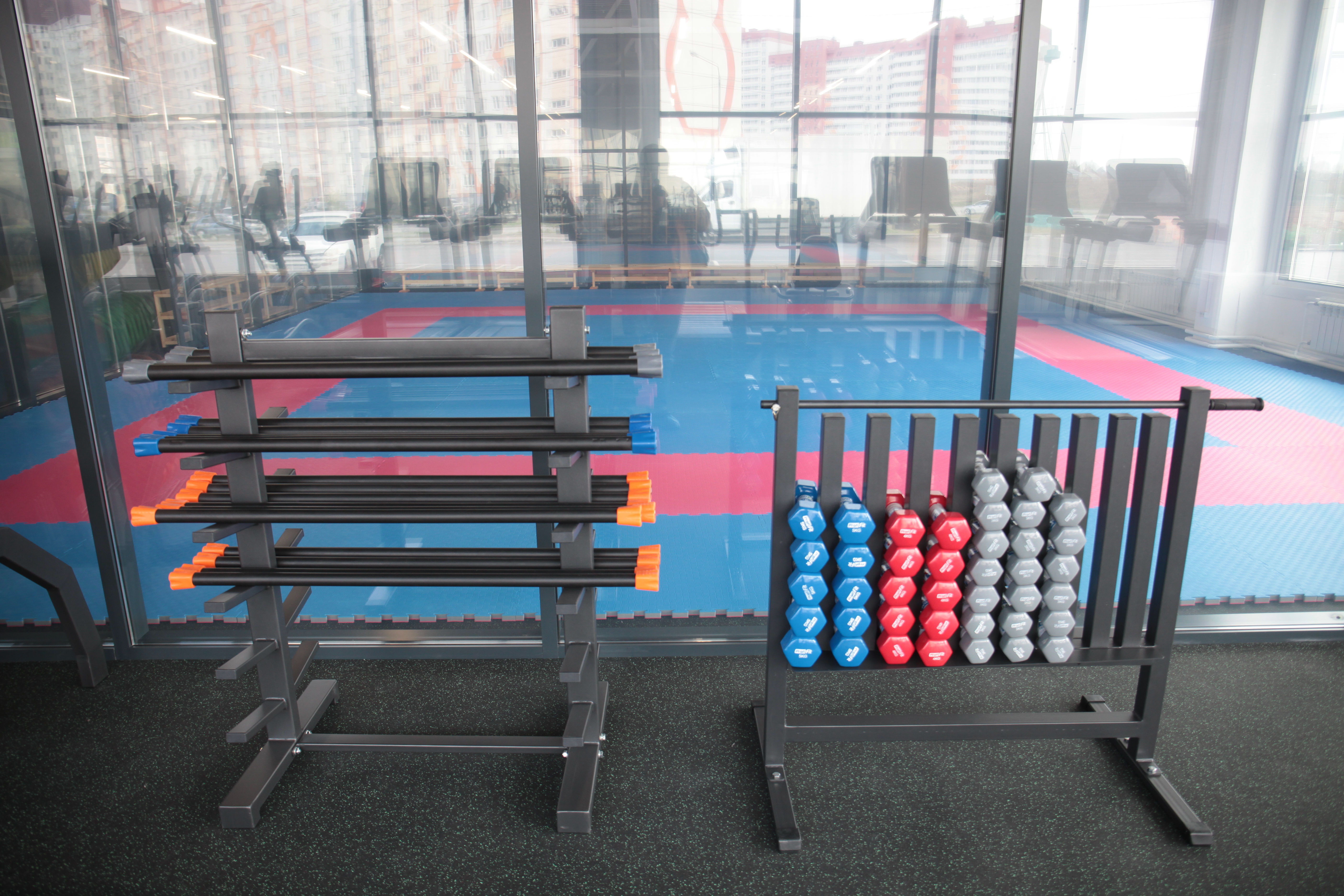 В здании предусмотрели два зала по 100 «квадратов» для занятий боевым искусством и для групповых тренировок, а также тренажёрный зал площадью 500 кв. метров с панорамным остеклением. Он тоже уже работает.