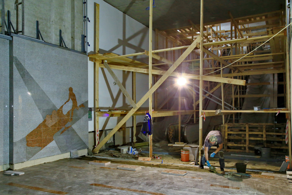 «Станция готова на 92%. Сейчас завершается облицовка гранитом — это один из самых трудозатратных видов работ. Остаются финишная покраска и установка подвесных потолков», — комментирует процесс начальник участка строительства станции Станислав Донцов.