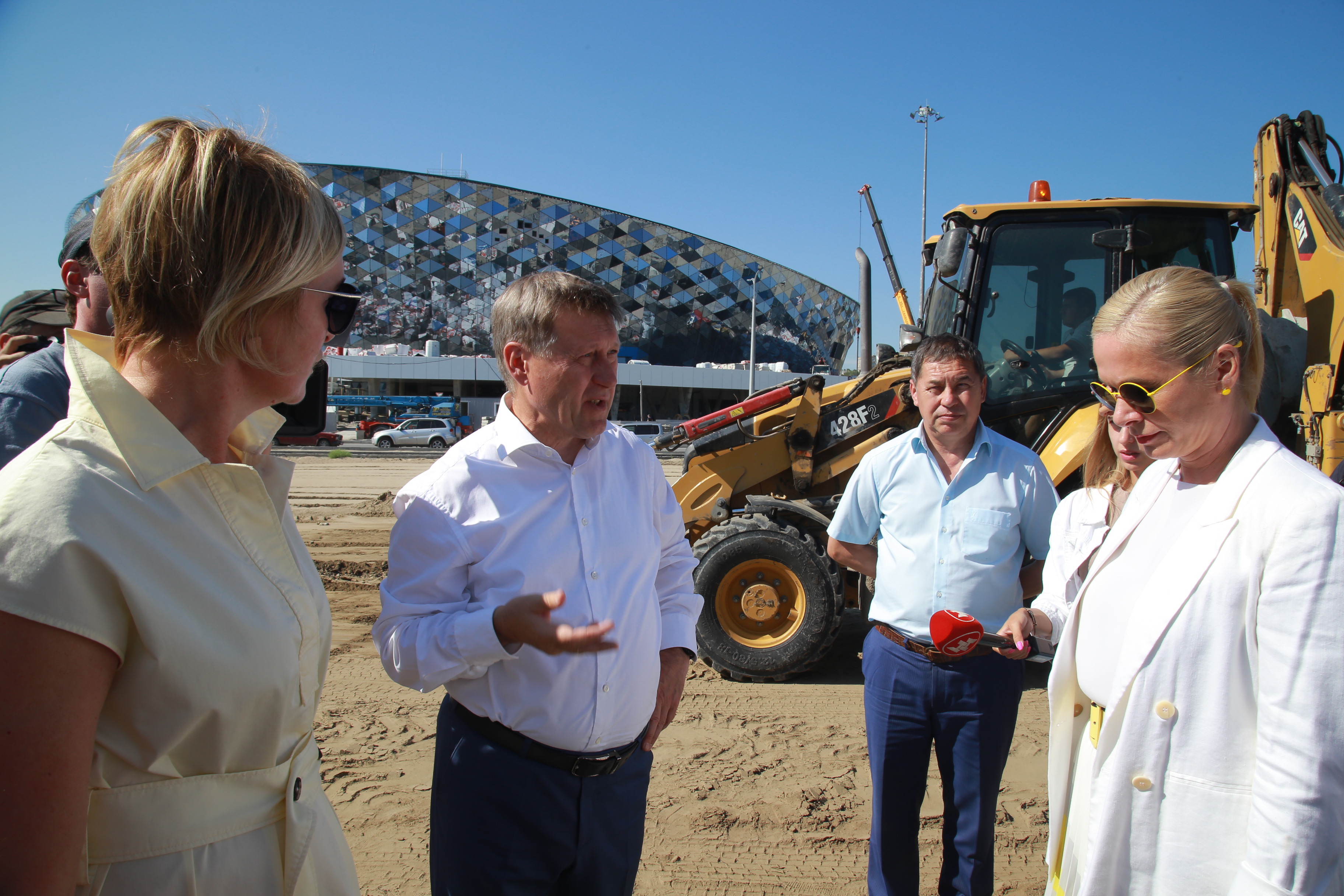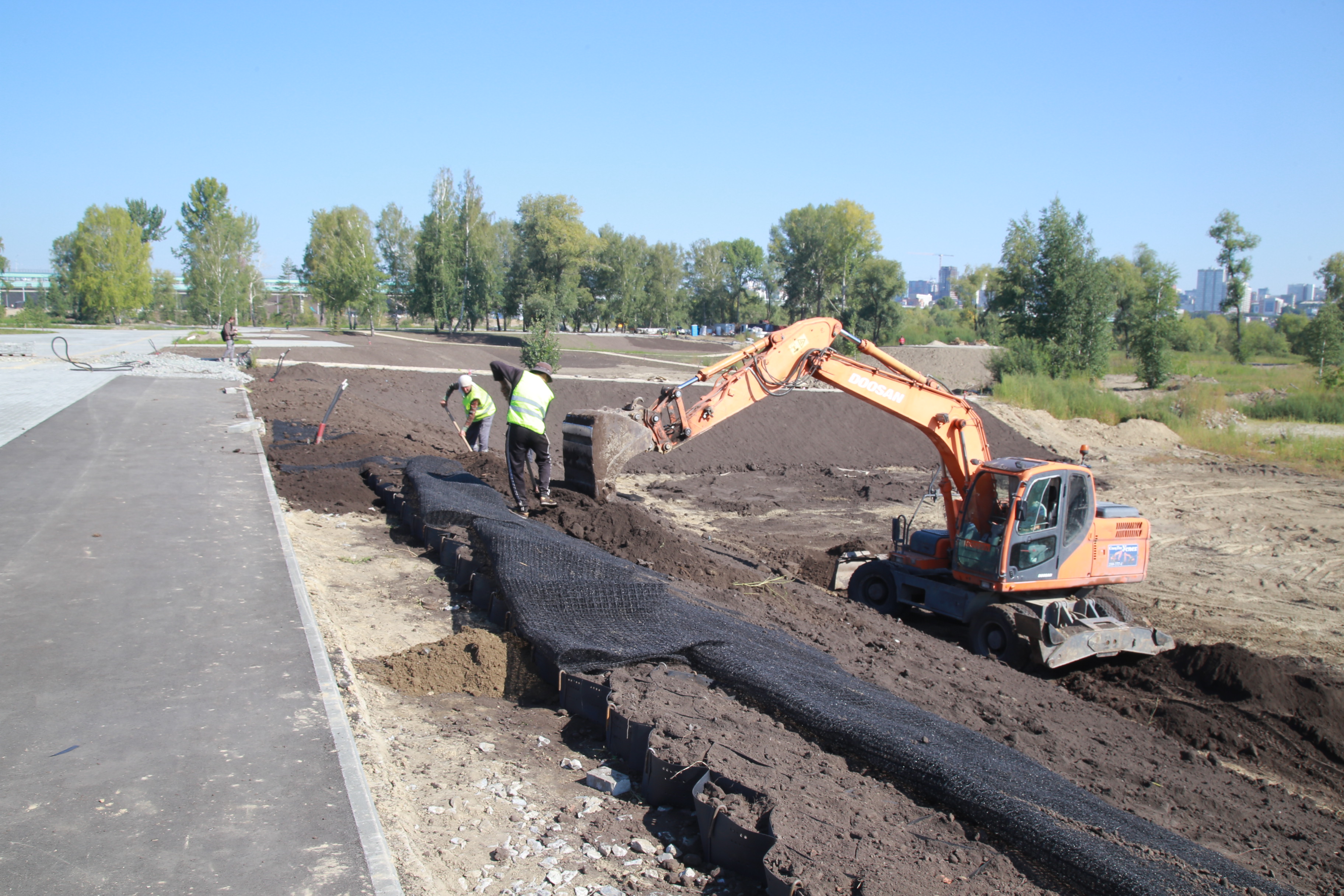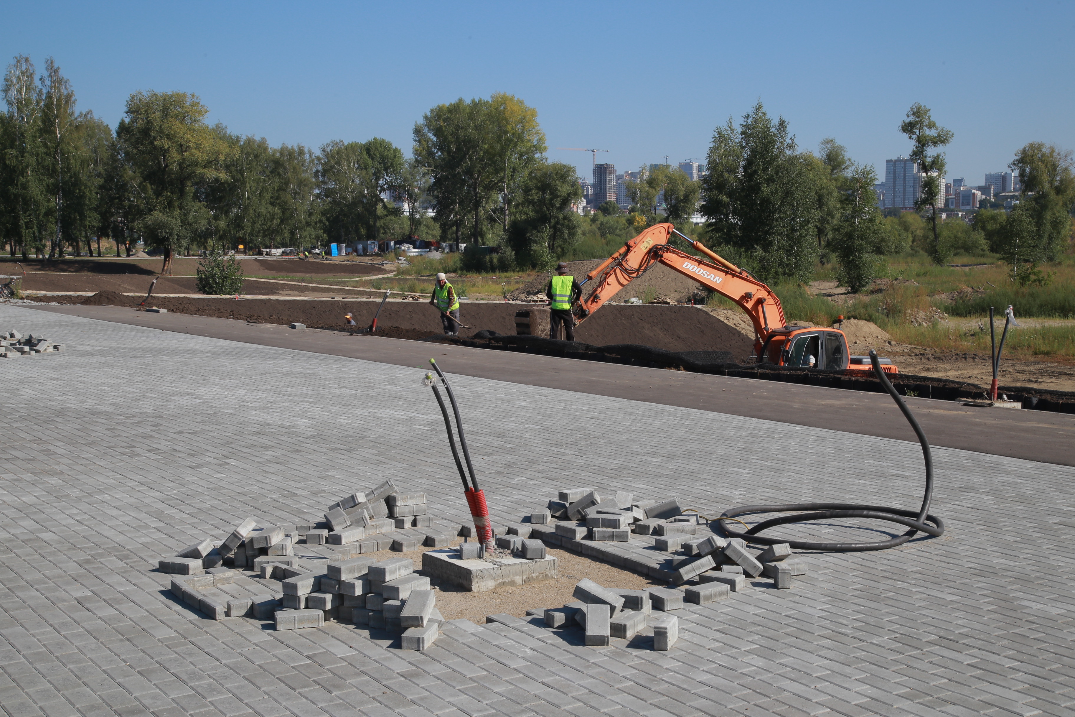 Заканчивают работы и в парке «Арена»: здесь укладывают плитку, осенью установят освещение и скамейки, оборудуют детские игровые площадки. Рядом построят лучший памп-трек в регионе. Завершить работы планируют в конце октября.