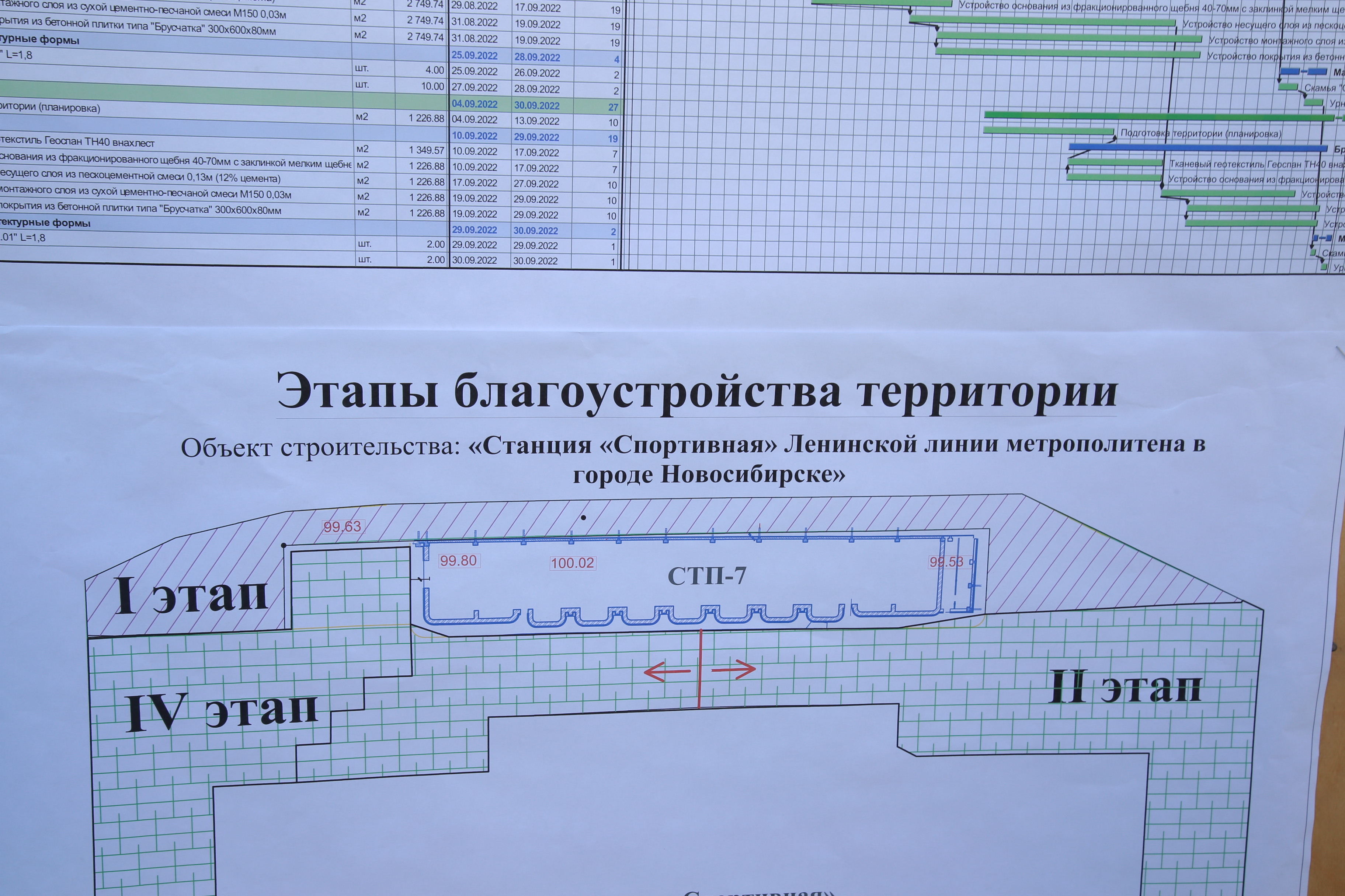 «Сейчас заканчивается внутренняя отделка, все панно вывешены, заканчивается отделка колонн. Пол сделан, в активной фазе установка раздвижных дверей, выкладывается внешний фасад. То есть сейчас мы занимаемся не капитальным строительством, а уже внешней отделкой. После этого — потолок, и станция будет готова», — рассказывает мэр Новосибирска Анатолий Локоть.