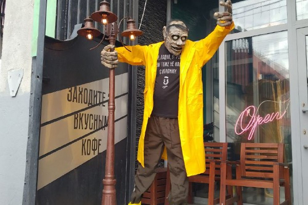 Статую зомби в жёлтом плаще установили на площади Ленина в Новосибирске