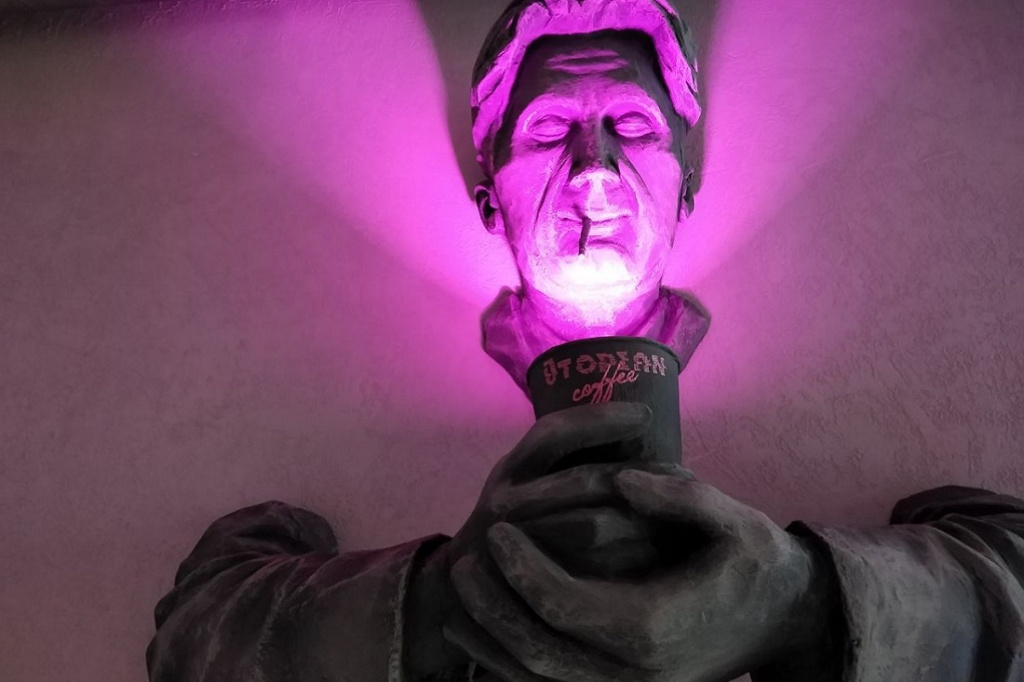 Добавим, что внутри кофейни расположен первый и единственный в Новосибирске памятник Джорджу Оруэллу — автору знаменитой антиутопии «1984», которая буквально у всех на слуху.
