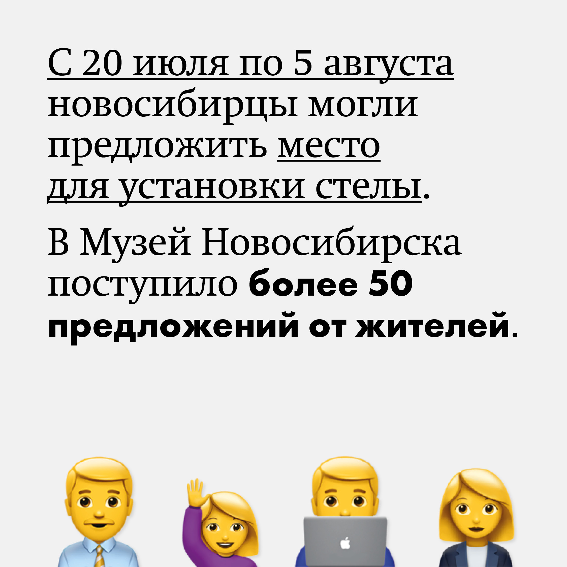 «Стела есть стела. Это знак, по большому счёту, он индивидуален. Почему площадь Калинина? Все должны видеть — не только новосибирцы, но и приезжающие в город Новосибирск, что это „Город трудовой доблести“. Памятник — это совсем другое. Это уже следующий этап. И там уже действительно должно быть место с поклонением, с возложением цветов. И это место, думаю, мы должны выбирать ещё отдельно», — сообщила заместитель мэра Новосибирска Анна Терешкова.