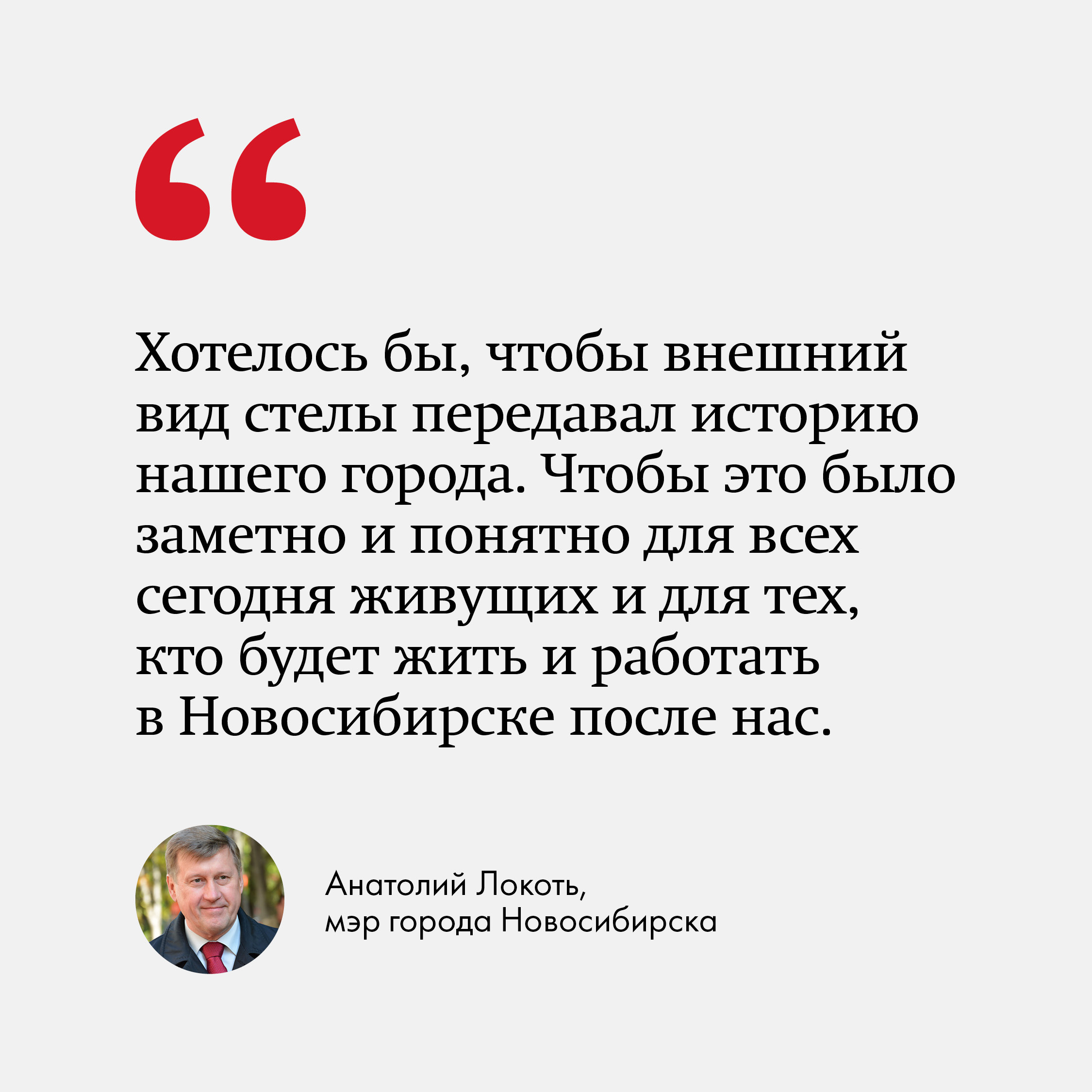 «Я всецело поддерживаю решение оргкомитета, которое было принято исходя из выбора новосибирцев. Жители города единодушно отдали свои голоса площади Калинина — считаю, что это справедливое решение. Исторически это заводской район, его судьба неразрывно связана с военным прошлым нашего города, с его трудовыми свершениями. Здесь расположен и знаменитый завод имени Ленина — приборостроительный завод, и весь архитектурный ансамбль площади полностью соответствует духу той великой эпохи, в честь которой и будет установлена стела», — отметил мэр Новосибирска Анатолий Локоть.