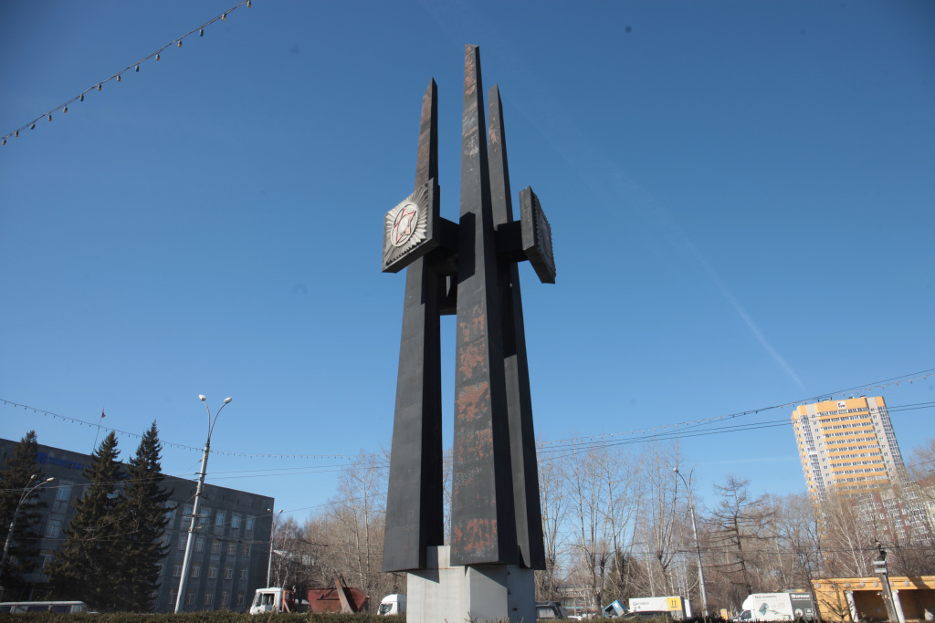 Стелу «Штыки» начали реставрировать на площади Сибиряков-Гвардейцев