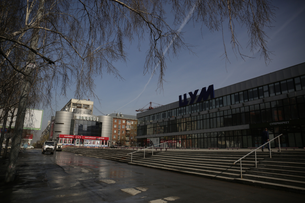4 марта 1967 года на пересечении Вокзальной магистрали и проспекта Димитрова в Новосибирске открыли трёхэтажный ТЦ — первый в городе. Объект получил название ЦУМ. В нём можно было купить самые разные товары: одежду, обувь, посуду, бытовую технику — всё, кроме продуктов. На кромке крыши располагалась большая неоновая вывеска «ЦУМ Новосибирск». По периметру первого этажа шла галерея, а на углу показывали время большие часы. Всё это можно увидеть на старых чёрно-белых фотографиях.
