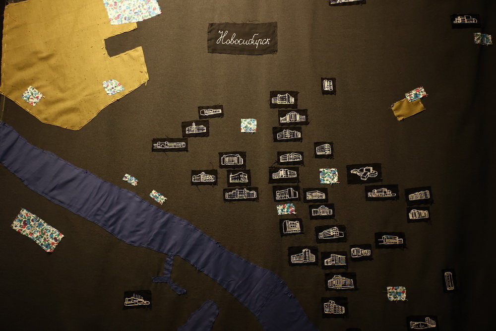На выставке «Стежки прогресса» вместе с текстильной картой Новосибирска представлено около 60 произведений. Всего же в коллекции художника — порядка 450 вышивок, охватывающих 50 городов по всему миру.