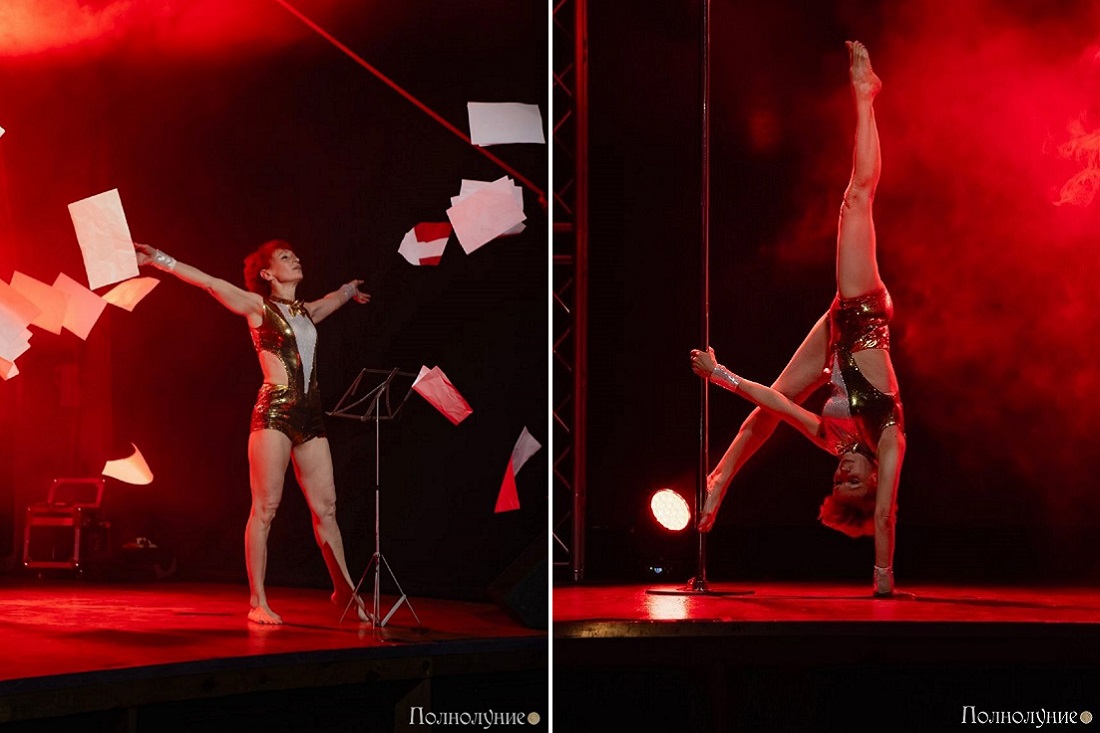 «Когда мне исполнилось 48, я посмотрела в зеркало и подумала, что надо бы заняться спортом. Пилон? Ну, пусть будет пилон. Шест меня встретил неприветливо. На самом деле это серьёзная физическая нагрузка, после первых занятий ноги не идут и руки не поднимаются. Было тяжело, много синяков, я одна взрослая среди молодых девчонок. Но у меня появилась спортивная злость: все могут, а я — нет? Я же в детстве в цирковом кружке занималась!