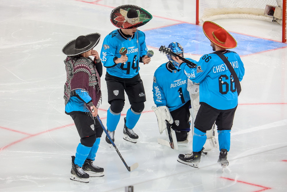 В числе наиболее ярких событий хоккейного праздника — конкурсы индивидуального мастерства. Участники подошли к процессу максимально креативно. На лёд вышли в костюмах, сомбреро и с гитарами. В итоге самый эффектный буллит исполнил Сергей Широков, круг на скорость быстрее всех пробежал Дмитрий Бучельников, а самый сильный бросок удался Тревору Мёрфи.