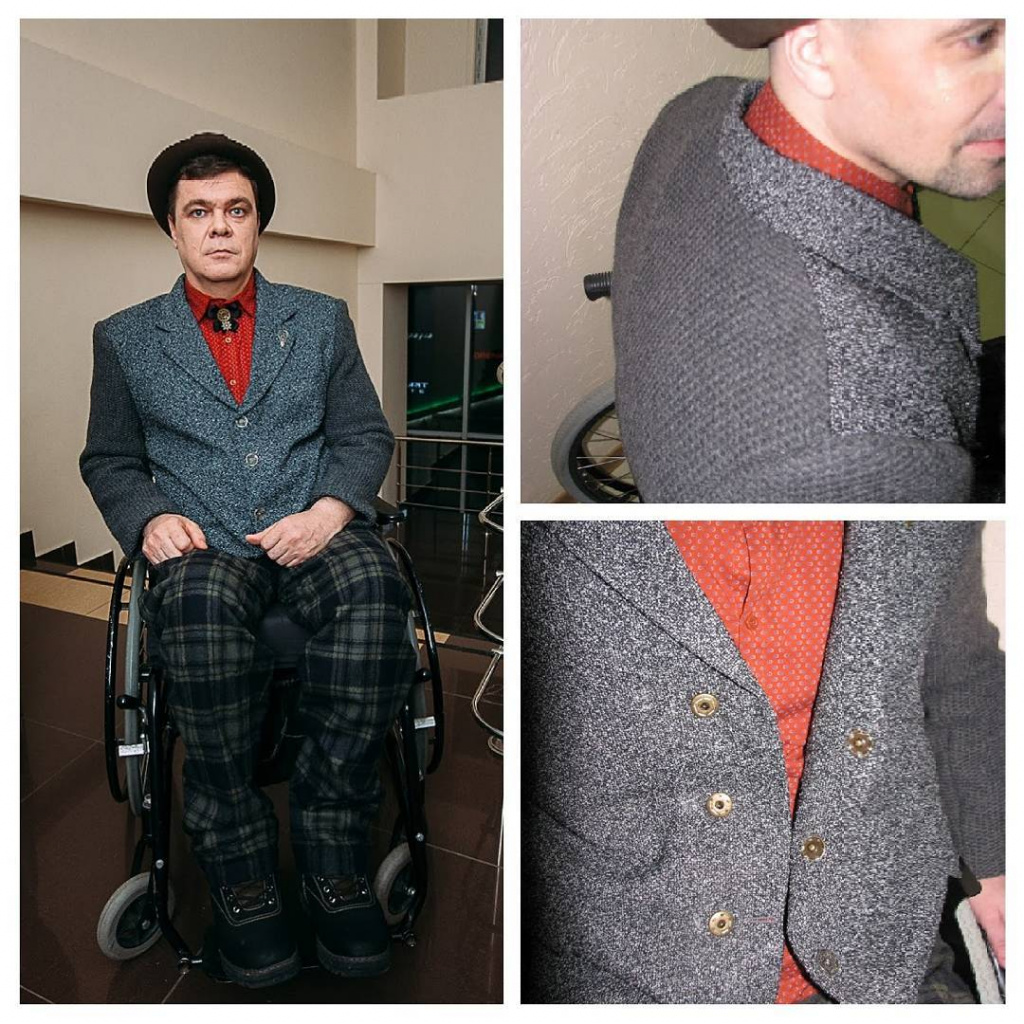 Олег Стояросов чувствует себя джентльменом в укороченном пиджаке с трикотажной спинкой для свободы движений. А все застежки на одежде — либо велькро (по-простому — липучки), либо кнопки. Нюансов много, но один из главных — возможность самостоятельно или с минимальной помощью надевать и снимать одежду, объясняет модельер. Такая функциональная одежда создается отчасти и для близких людей с инвалидностью. Раньше человек в инвалидном кресле не мог одеться без помощи родных. Теперь может.