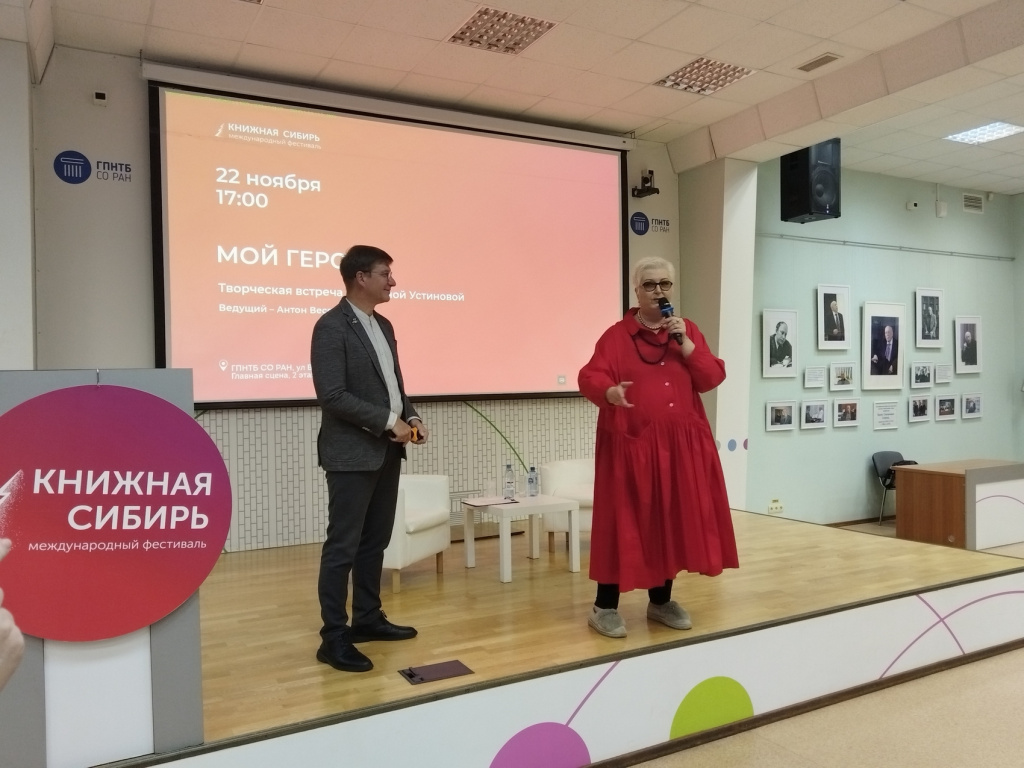 Говоря о своем участии в фестивале «Книжная Сибирь», знаменитость призналась, что ей пришлось дополнительно покупать в Новосибирске большую сумку, чтобы было в чём увезти домой издания местных авторов, приобретённые на ярмарке в ГПНТБ.