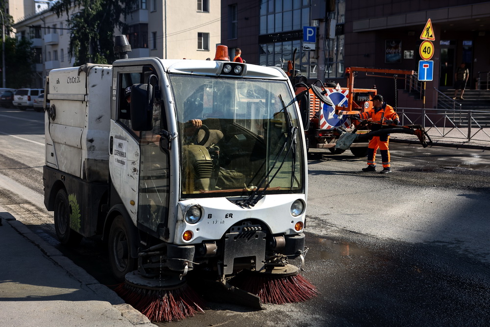 «Работа у нас ведётся в несколько этапов. Первый этап — сбор грязи вручную. Задействованы дорожные рабочие, погрузчик и самосвал. После чего мы запускаем подметальную технику. Вакуумно-подметальные машины собирают мелкие частицы, пыль и оставшуюся грязь. Далее — поливомоечные. Они моют у нас лотковую часть, техполосу, тротуары и ограждения. На данный момент работаем на самых проблематичных участках», — рассказал начальник участка муниципального учреждения «Дзержинка» Сергей Никулин.