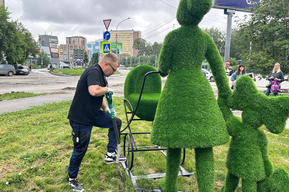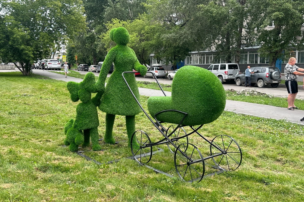 Объёмная фигура с покрытием из искусственной травы появилась вблизи парка «Берёзовая роща». Топиарную композицию «Мать с детьми» установили по инициативе ТОС на средства гранта от мэрии Новосибирска.