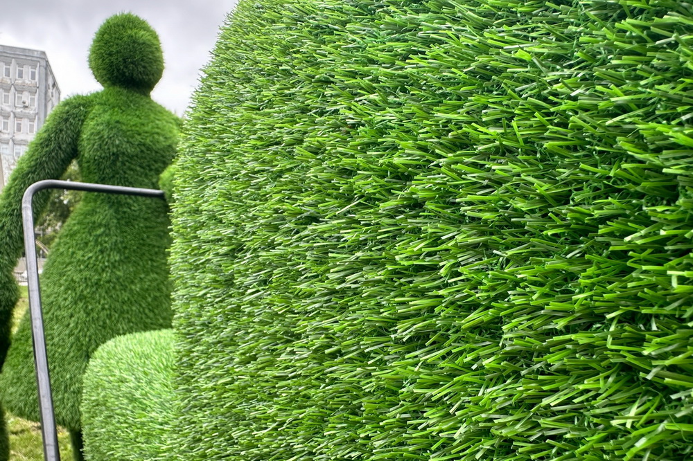 Скульптуру из искусственной травы «Мать с детьми» установили в Дзержинке