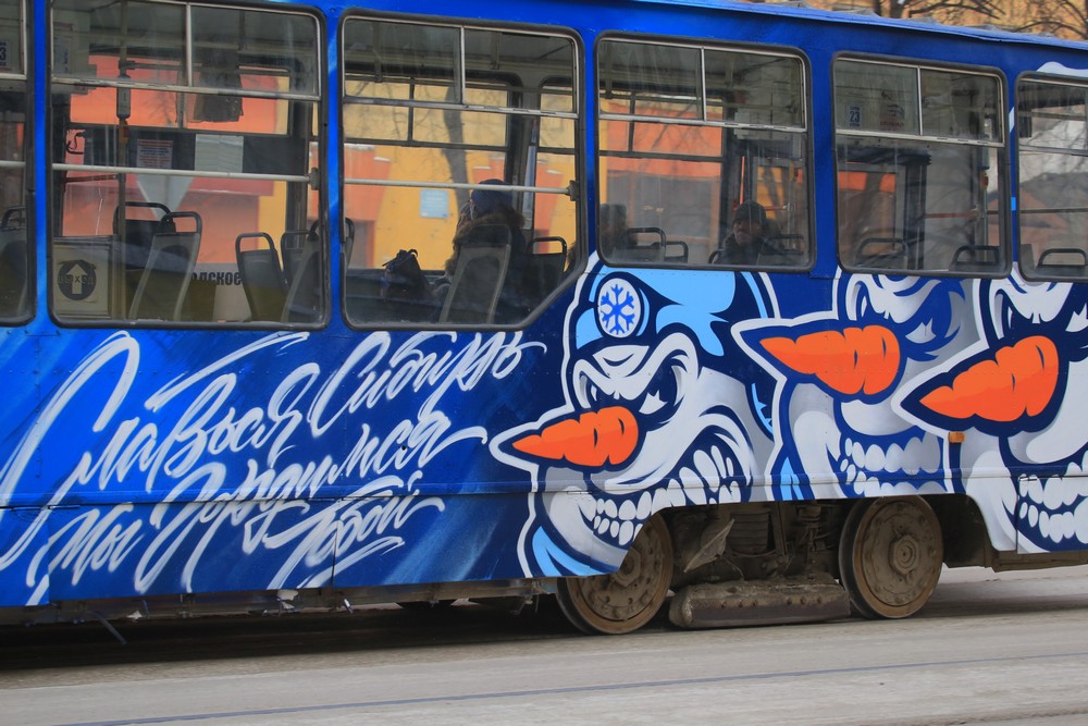 Новосибирская арт-группа «Такнадо!» накануне Нового года расписала один из трамваев в стилистике хоккейного клуба «Сибирь». Главным персонажем граффити стал злой снеговик — символ команды. Финансовую поддержку художникам оказала Сибирская генерирующая компания.