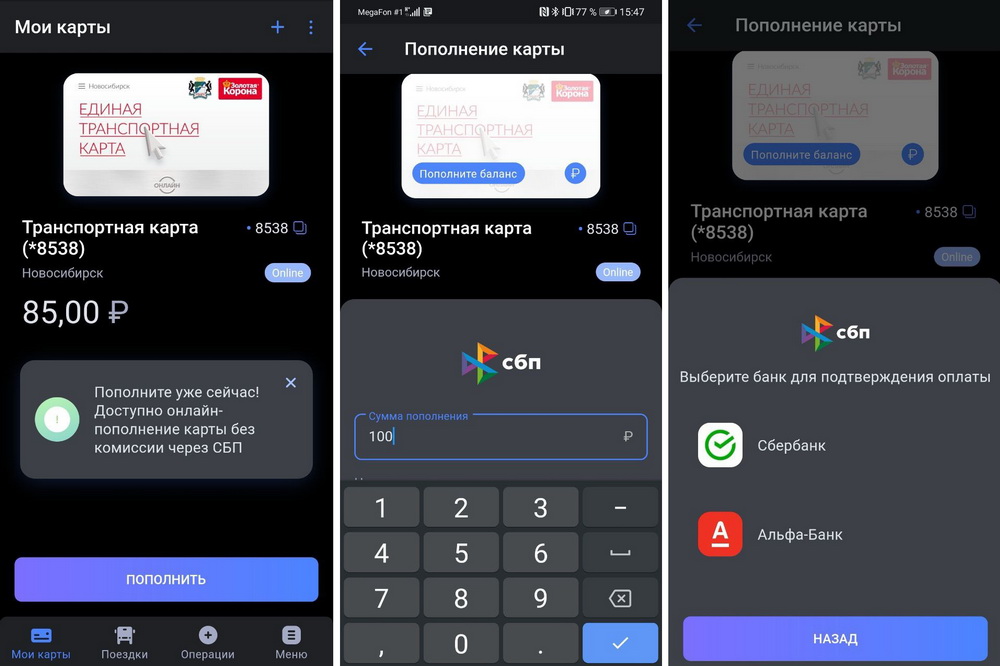 Транспортную карту теперь можно пополнить через систему быстрых платежей